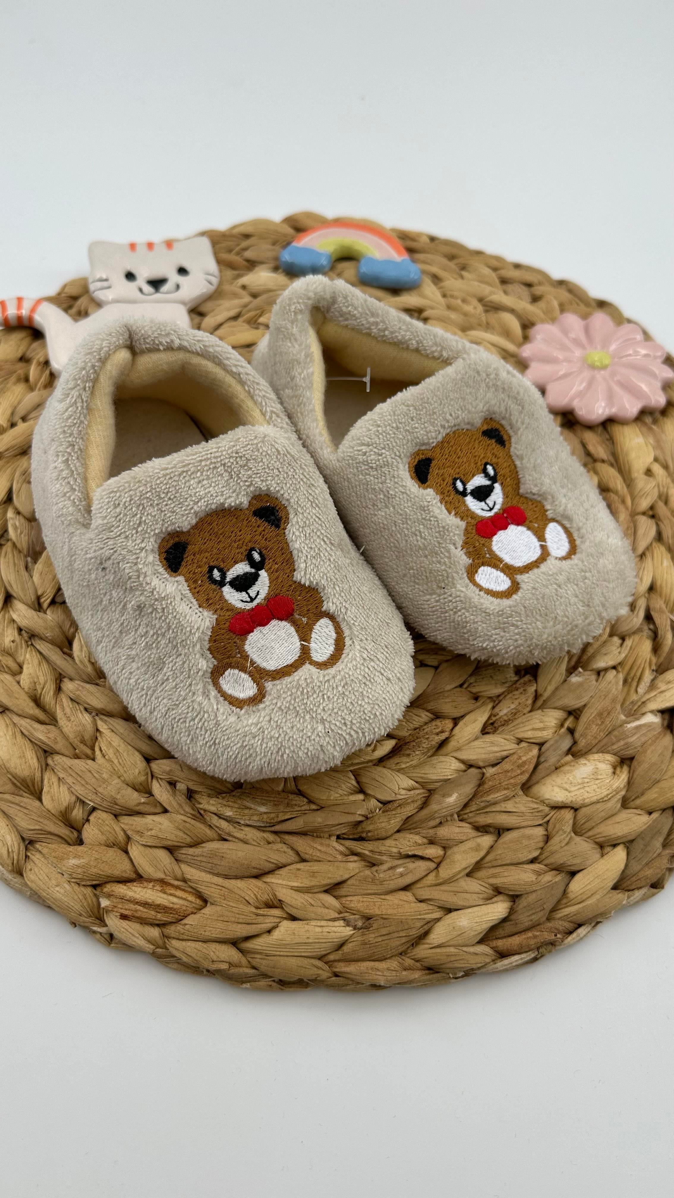 1208-3 Ayıcık İşlemeli Panduf KREM
