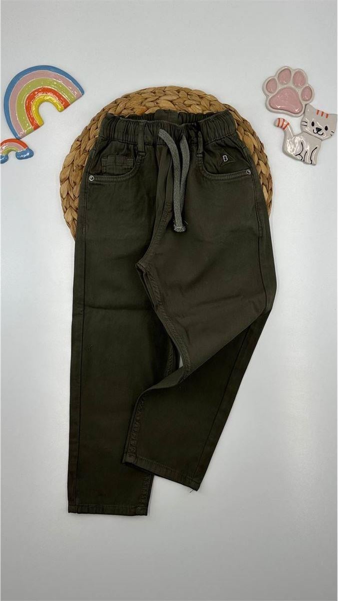 13713-1 Beli Lastikli B Detaylı Pantolon HAKİ YEŞİL