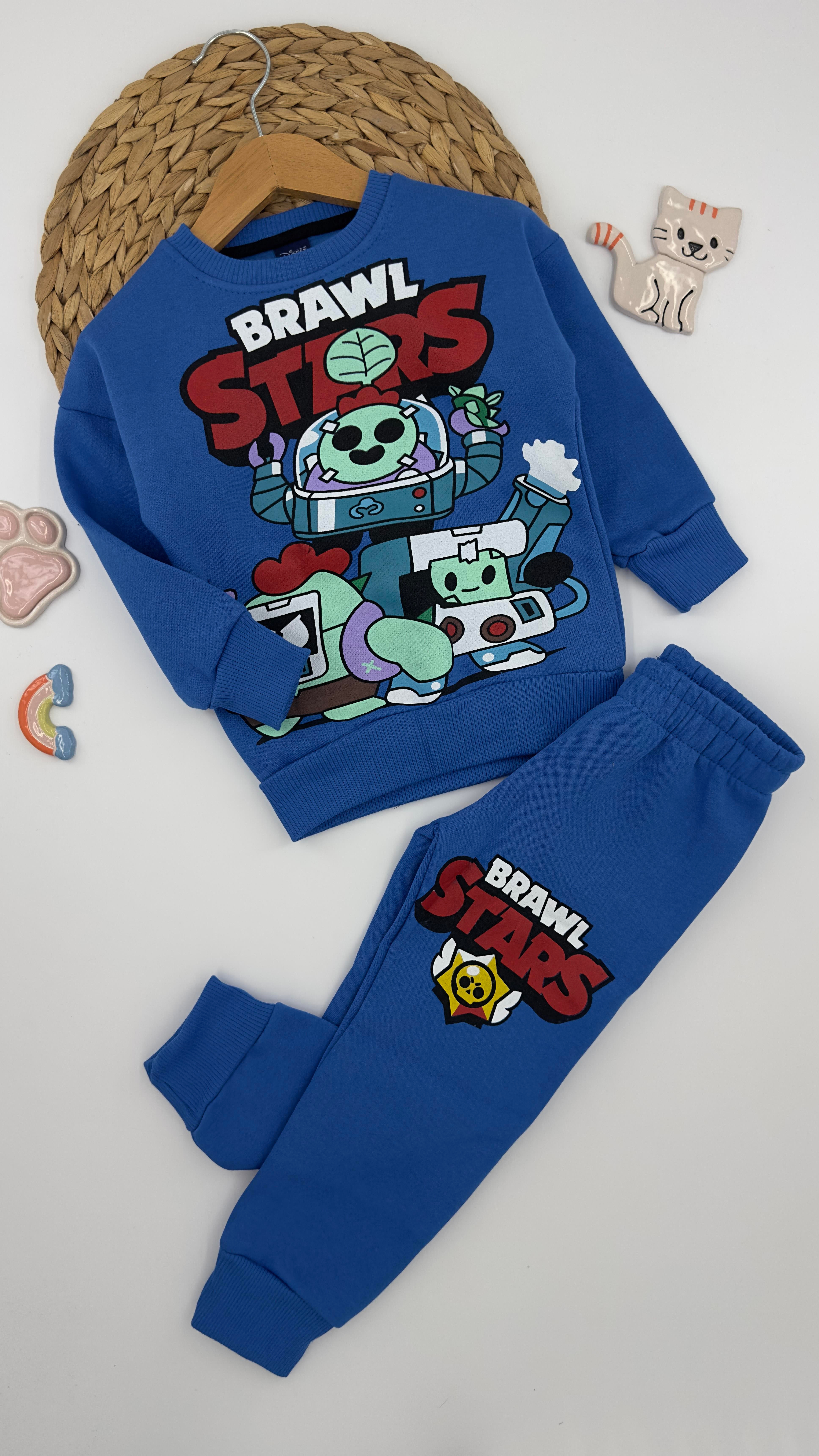 1453 Brawl Stars Baskılı Üç İplik Şardonlu Erkek Çocuk Takım MAVİ