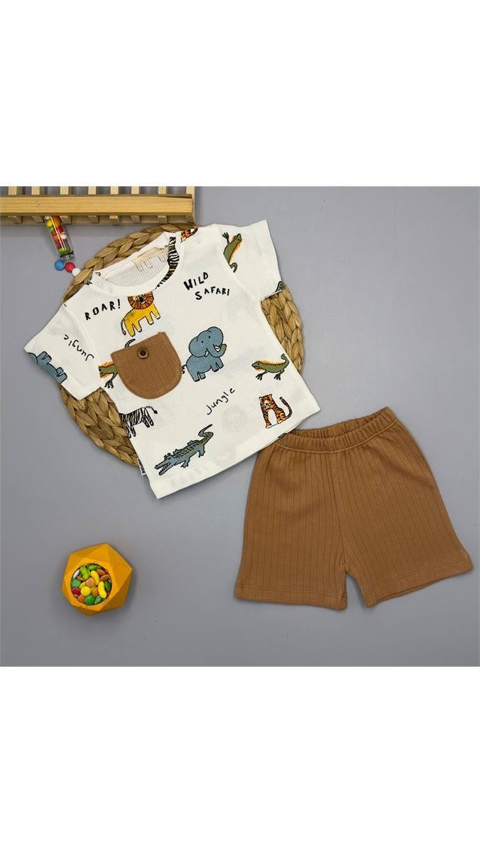 1453 Hayvan Figürlü Şortu Erkek Takım KAHVERENGİ