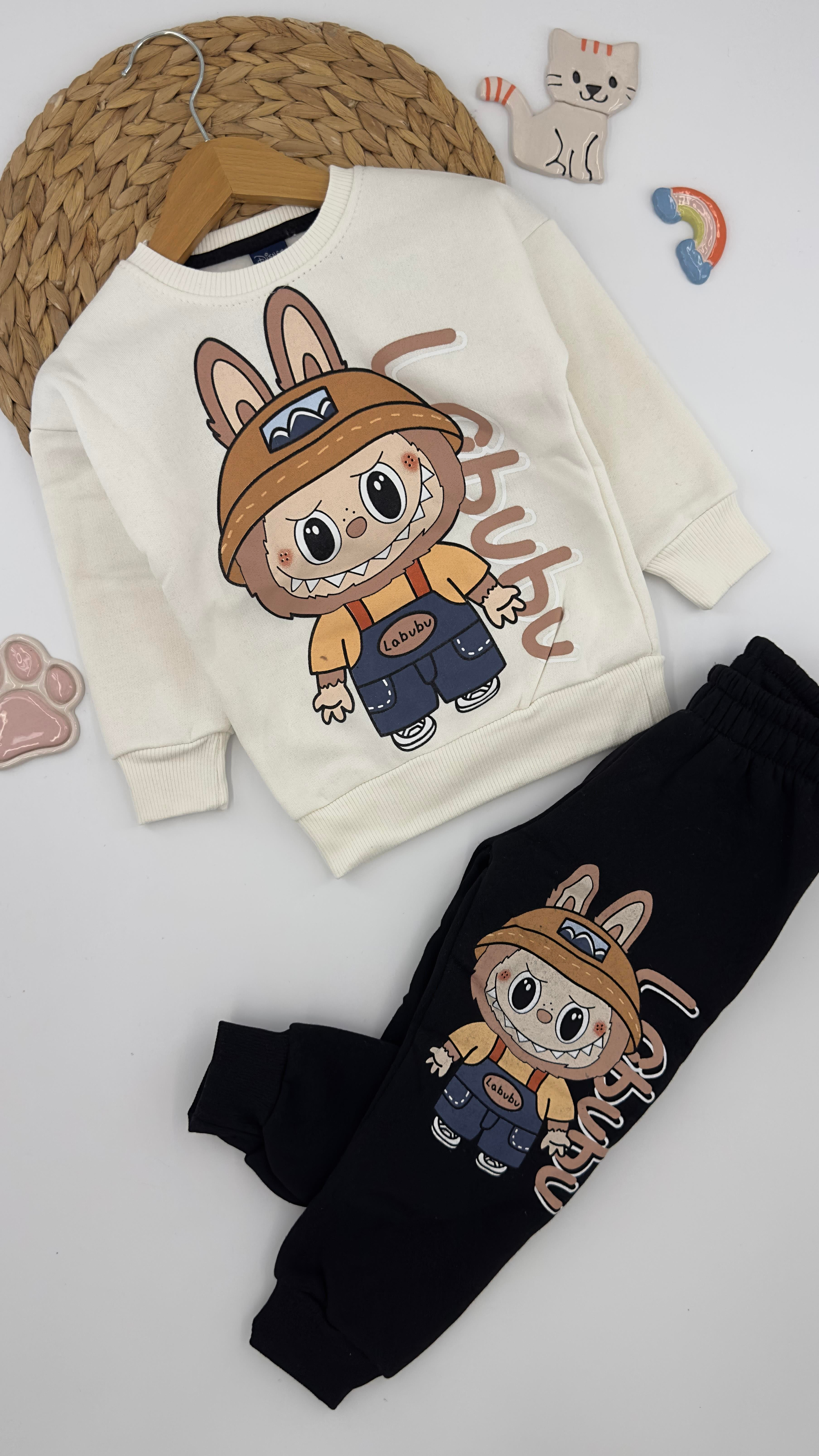 1453 Labubu Baskılı Üç İplik Şardonlu Erkek Çocuk Takım KREM