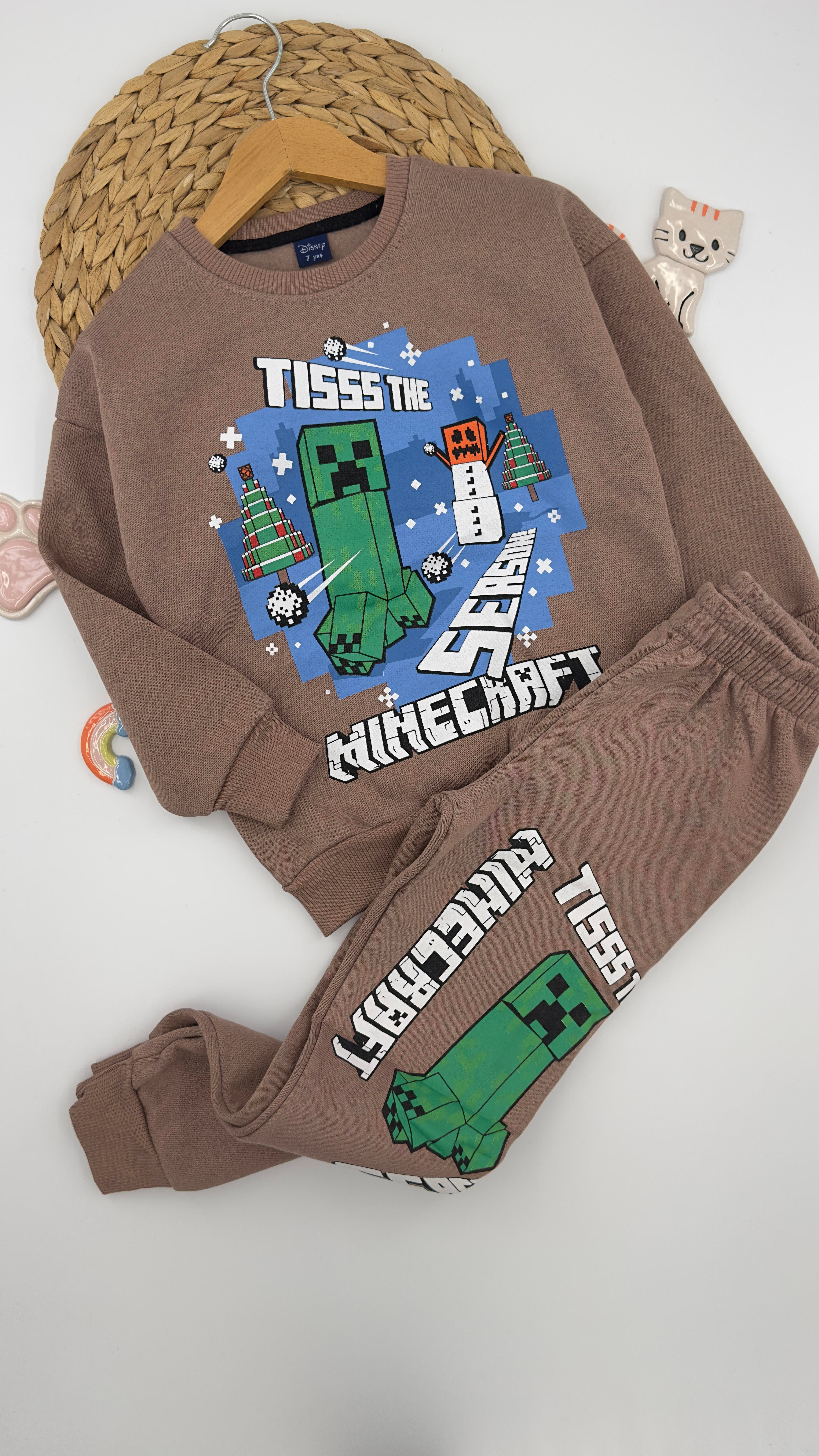 1453 Minecraft Baskılı Üç İplik Şardonlu Erkek Çocuk Takım KAHVE