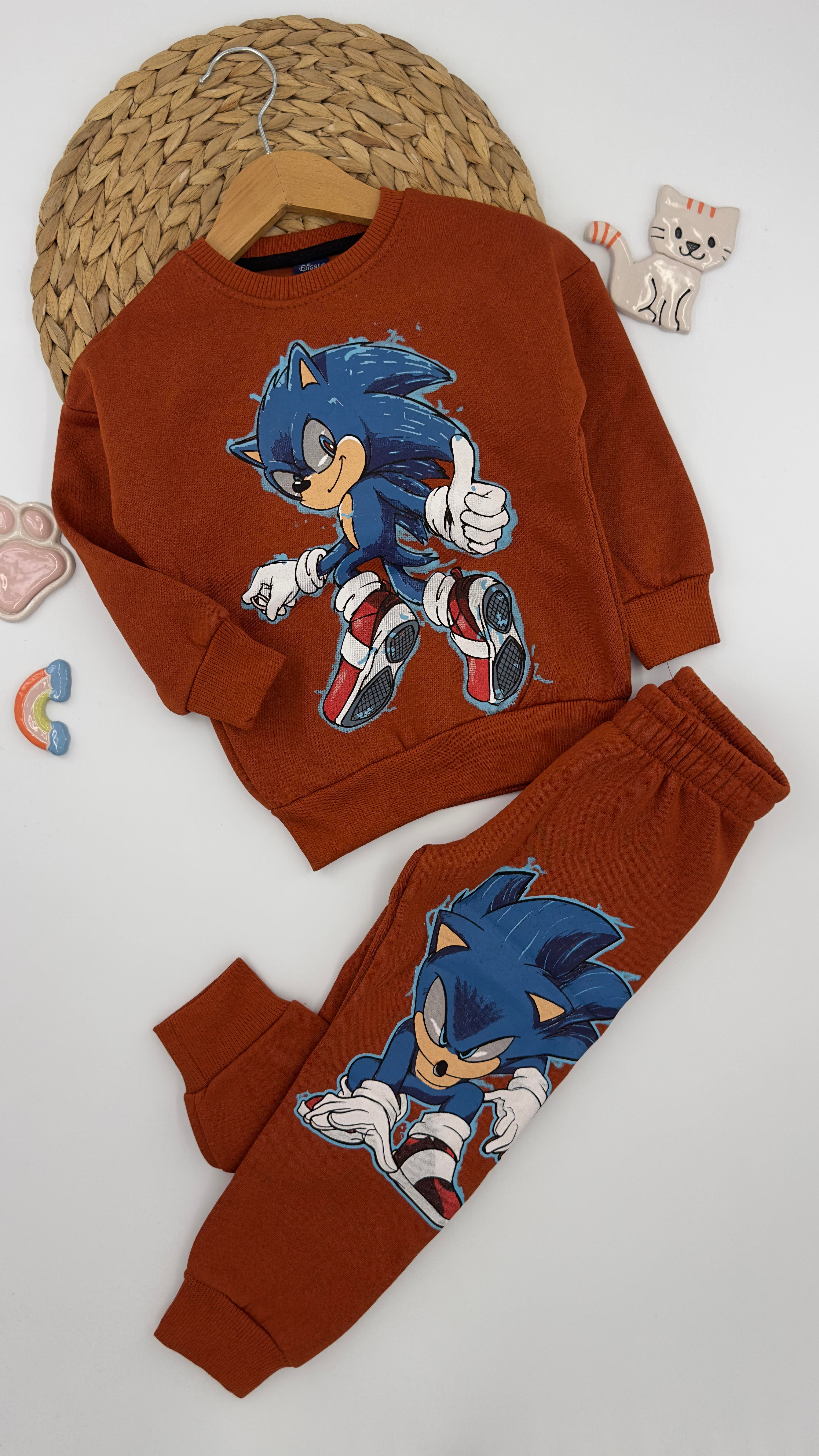 1453 Sonic Baskılı Üç İplik Şardonlu Erkek Çocuk Takım TRC