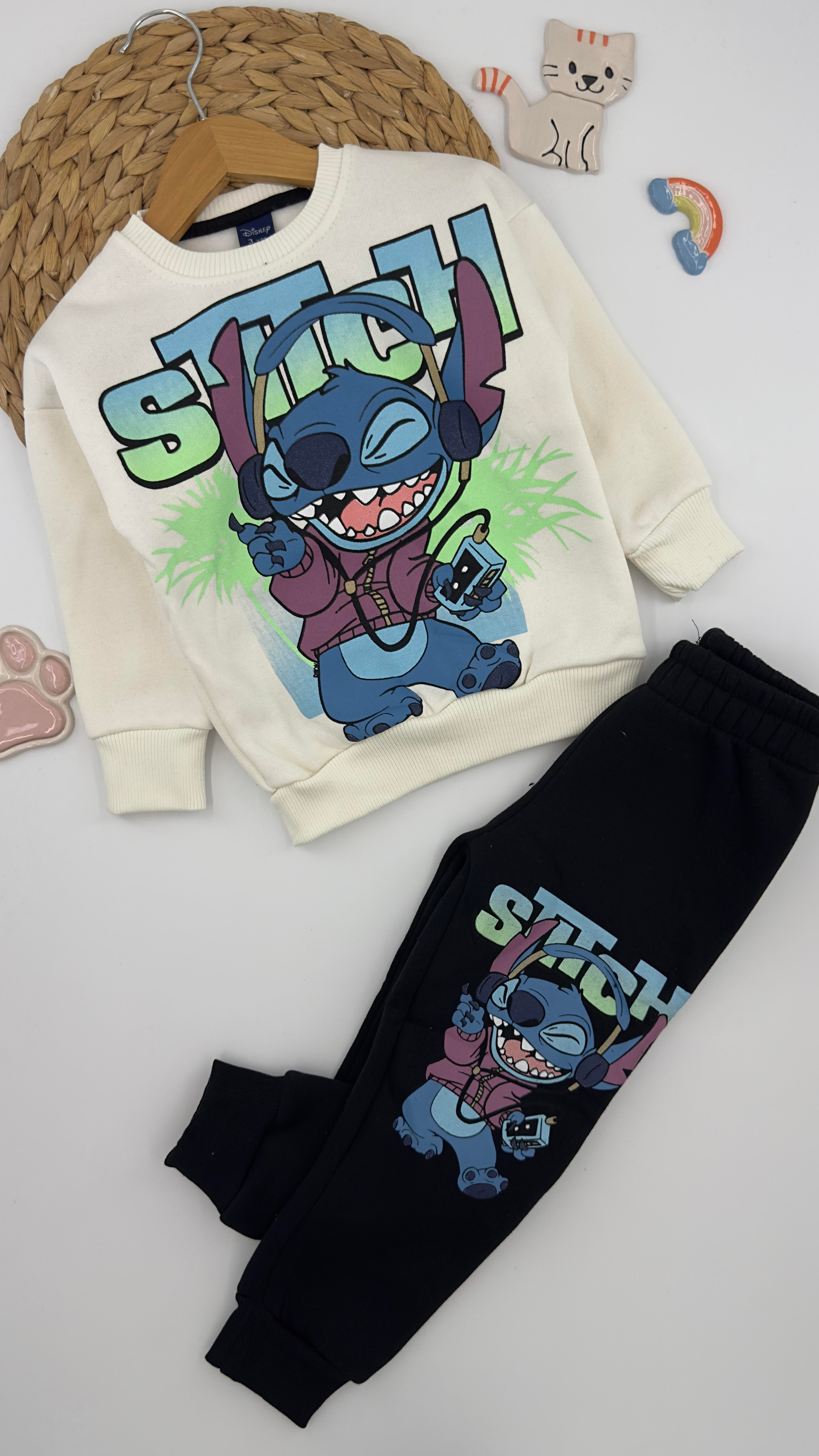1453 Stich Baskılı Üç İplik Şardonlu Erkek Çocuk Takım KREM