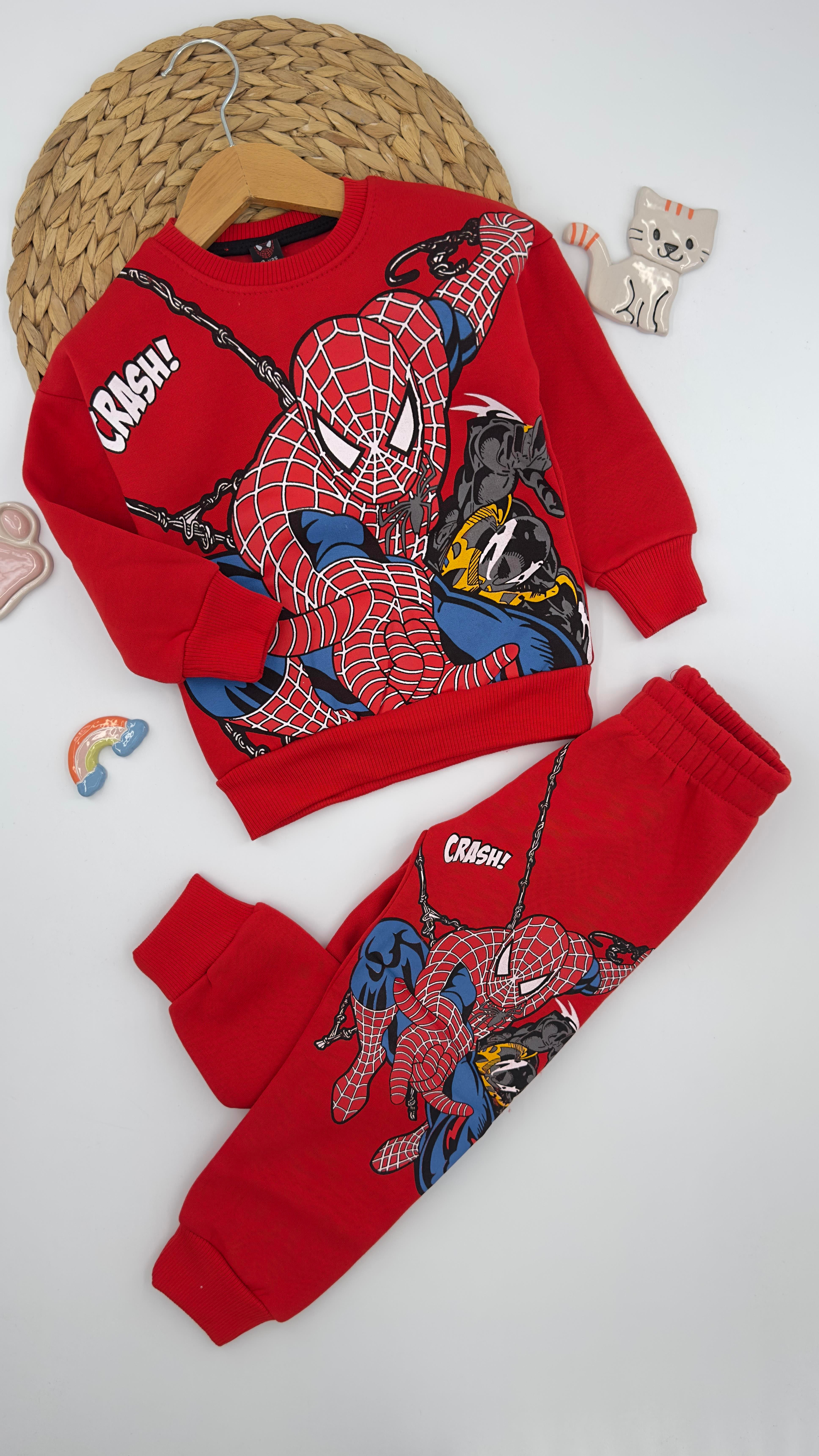 1453 Zincirli Spider-Man  Baskılı Üç İplik Şardonlu Erkek Çocuk Takım KIRMIZI