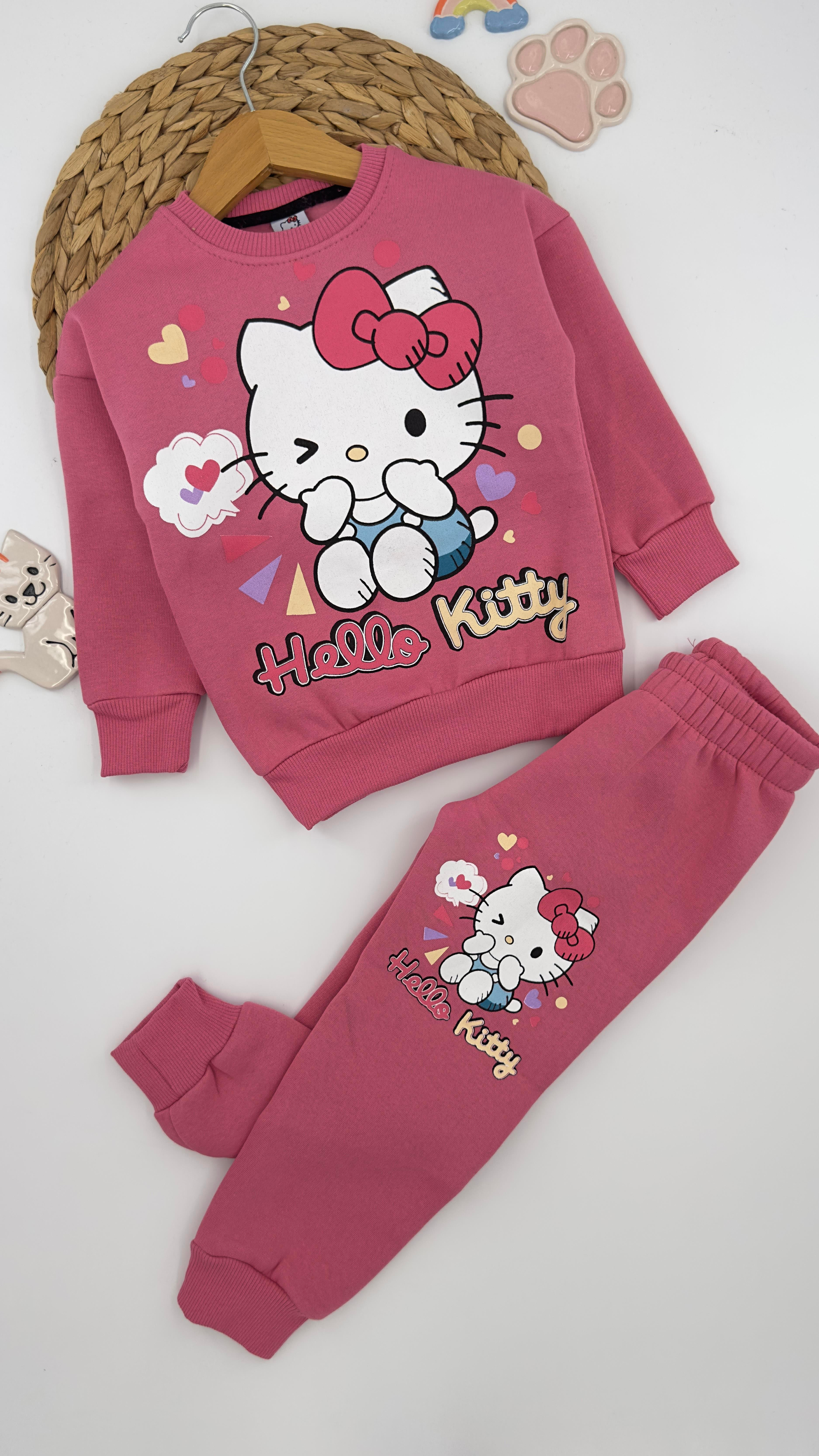 1454 Hello Kity Baskılı Üç İplik Şardonlu Kız Çocuk Takım PEMBE