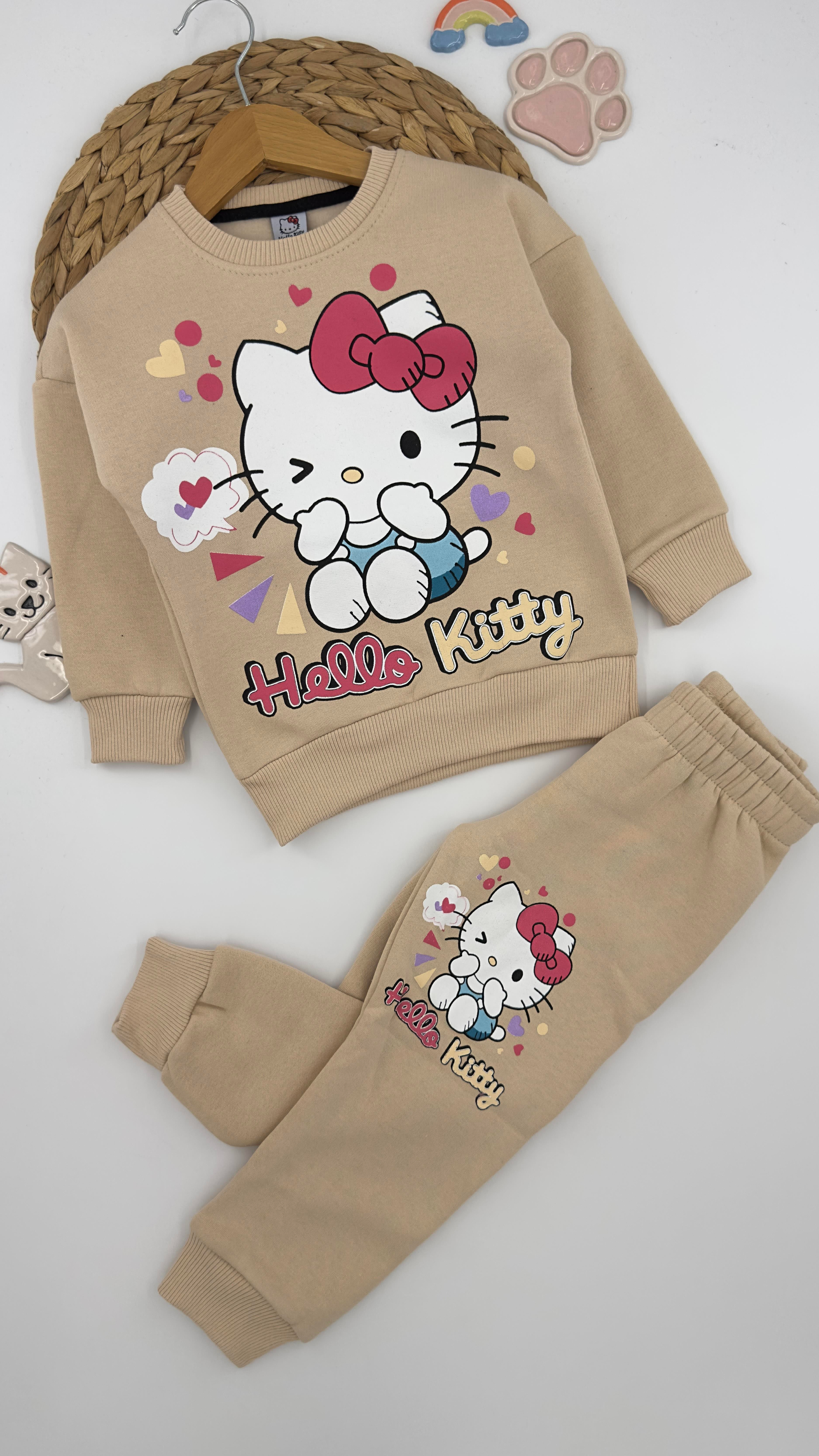 1454 Hello Kity Baskılı Üç İplik Şardonlu Kız Çocuk Takım TAŞ