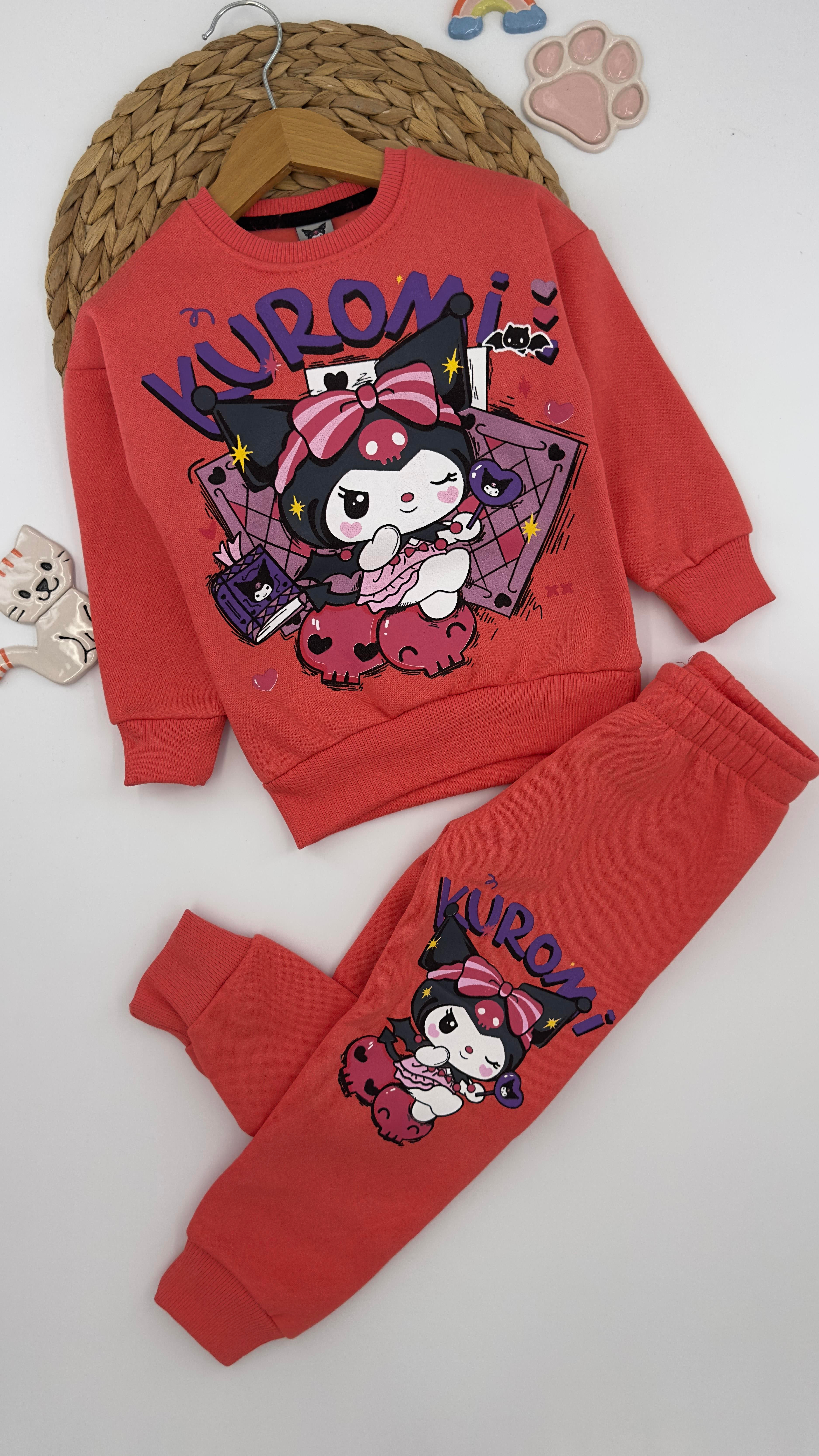 1454 Kuromi Baskılı Üç İplik Şardonlu Kız Çocuk Takım NAR CICEGI