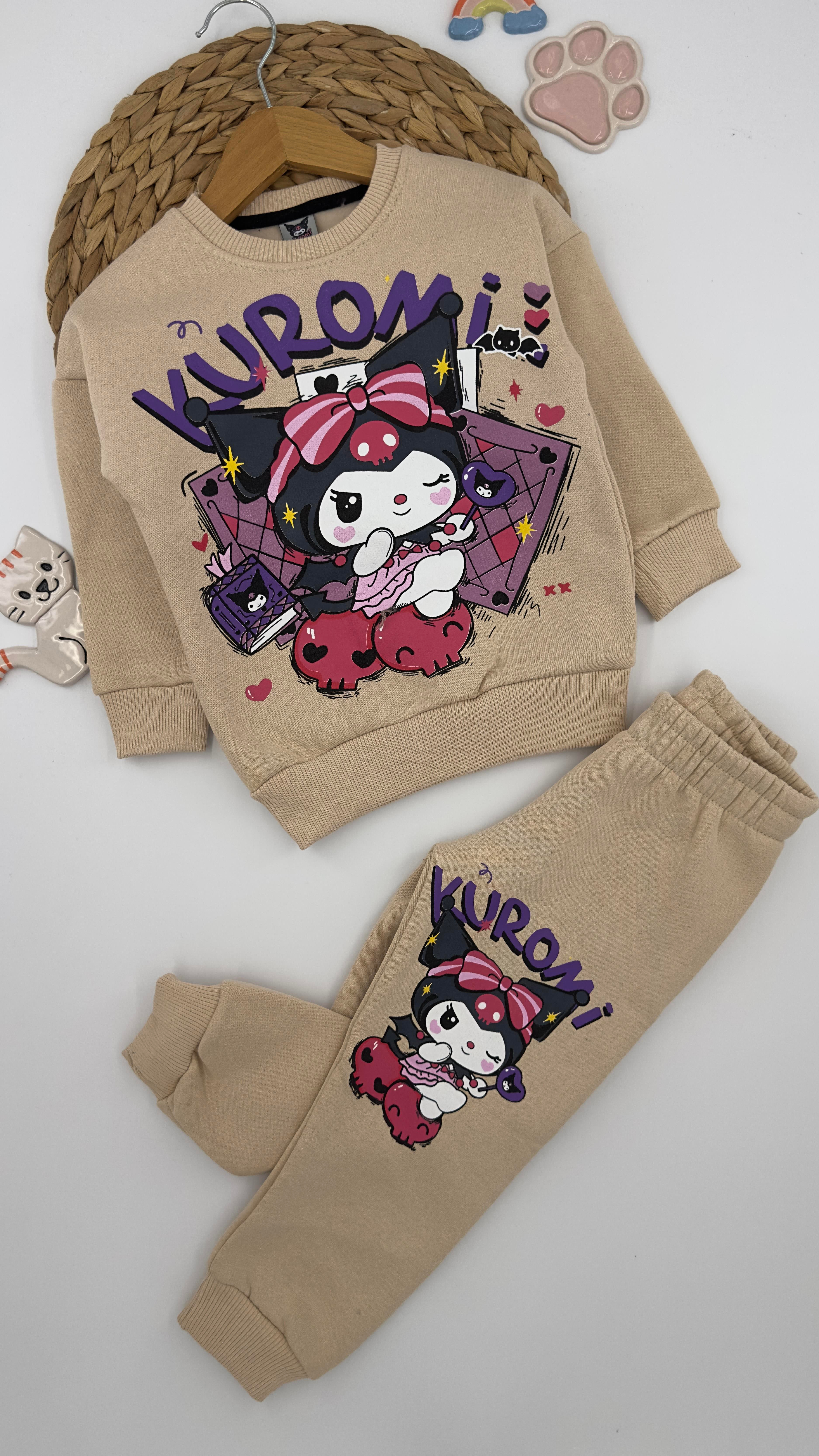 1454 Kuromi Baskılı Üç İplik Şardonlu Kız Çocuk Takım TAŞ