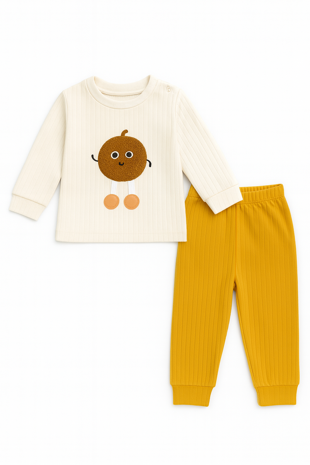 1463 Sevimli Ayaklı Kabak İşlemeli Fitilli İkili BebeTakım KAHVE 1463 Sevimli Ayaklı Kabak İşlemeli Fitilli İkili BebeTakım HARDAL
