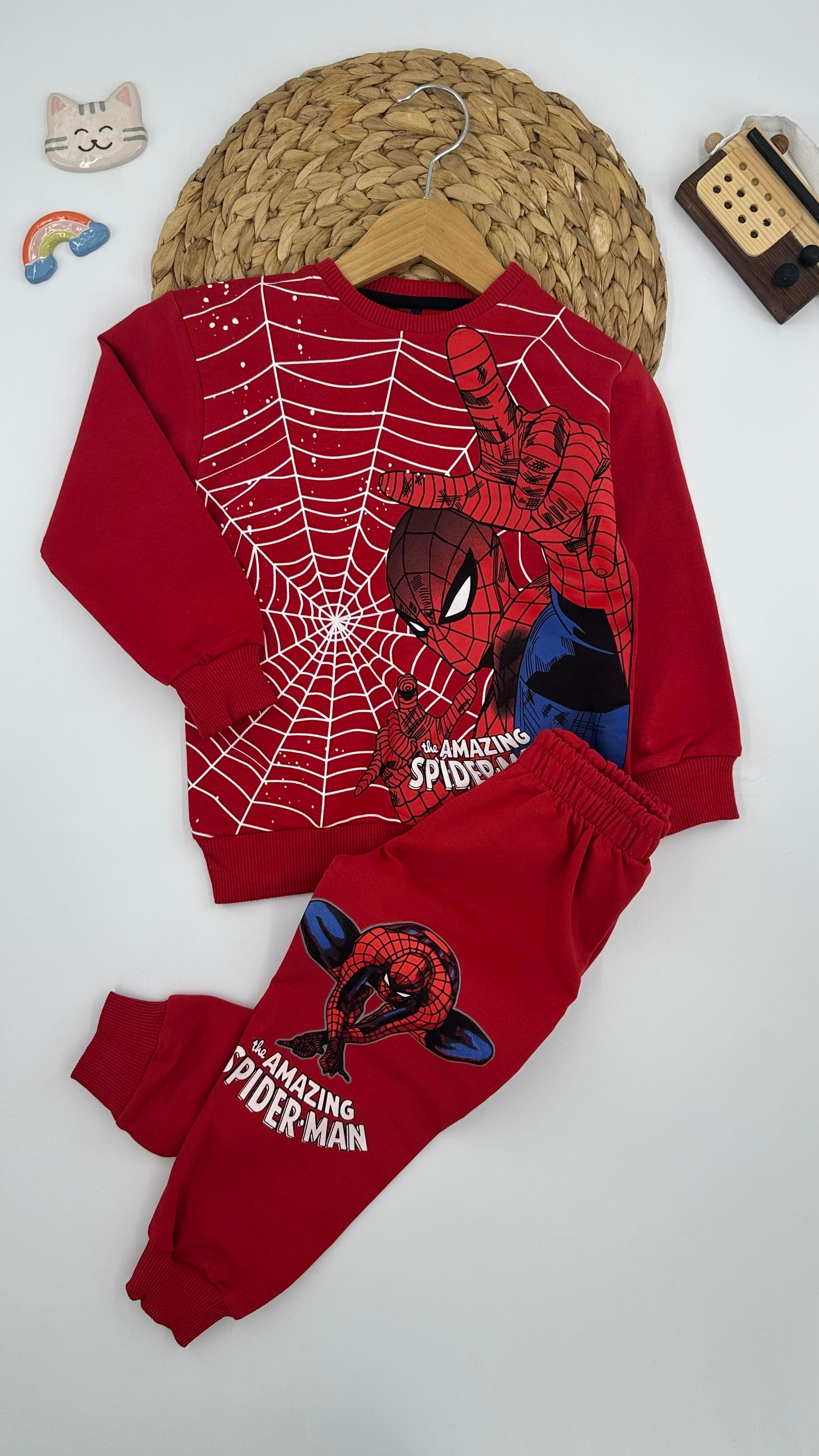 1509-2 Spider-Man Desenli Erkek Çocuk Takım KIRMIZI