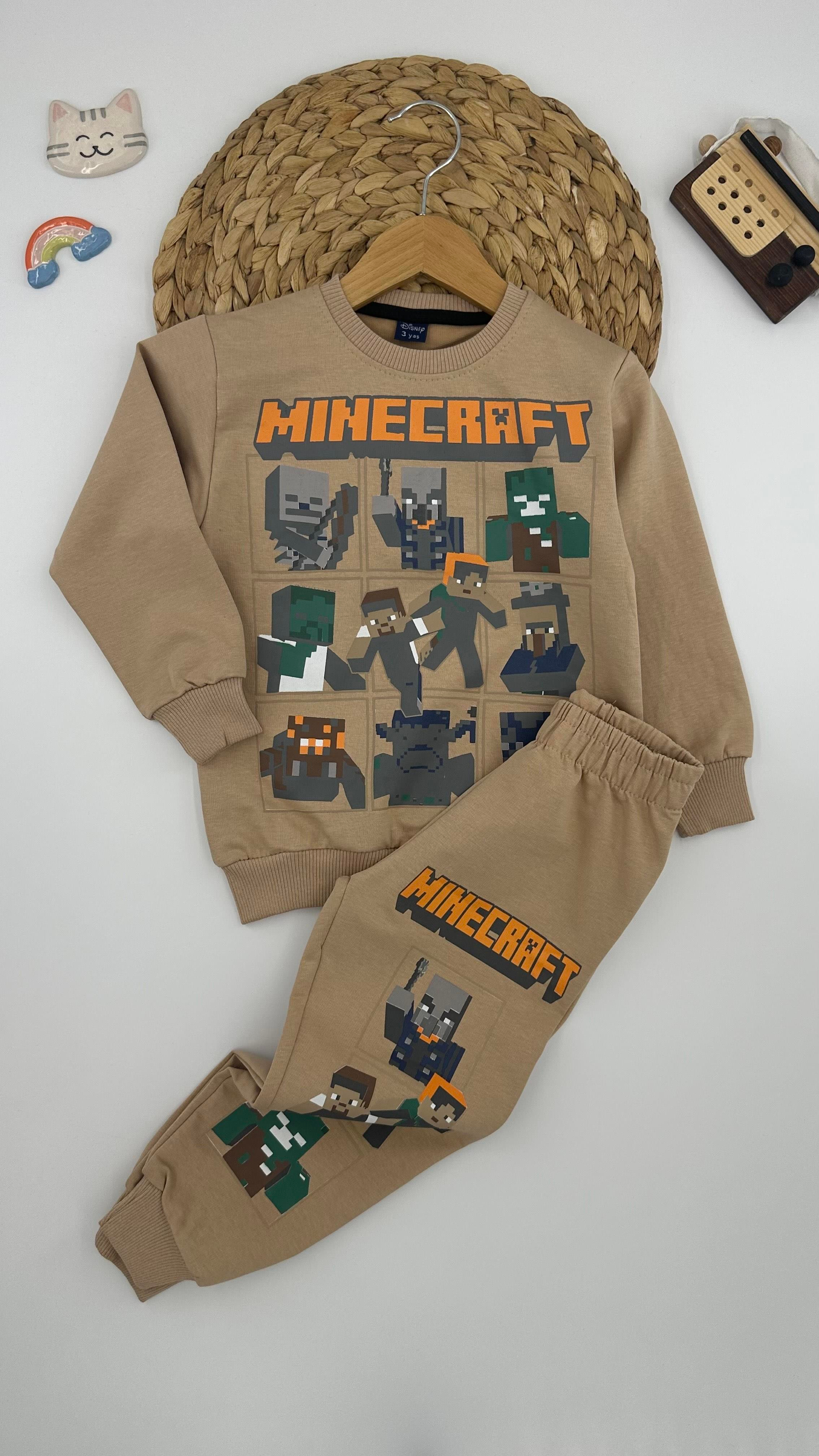 1509-3 Minecraft Desenli Erkek Çocuk Takım BEJ