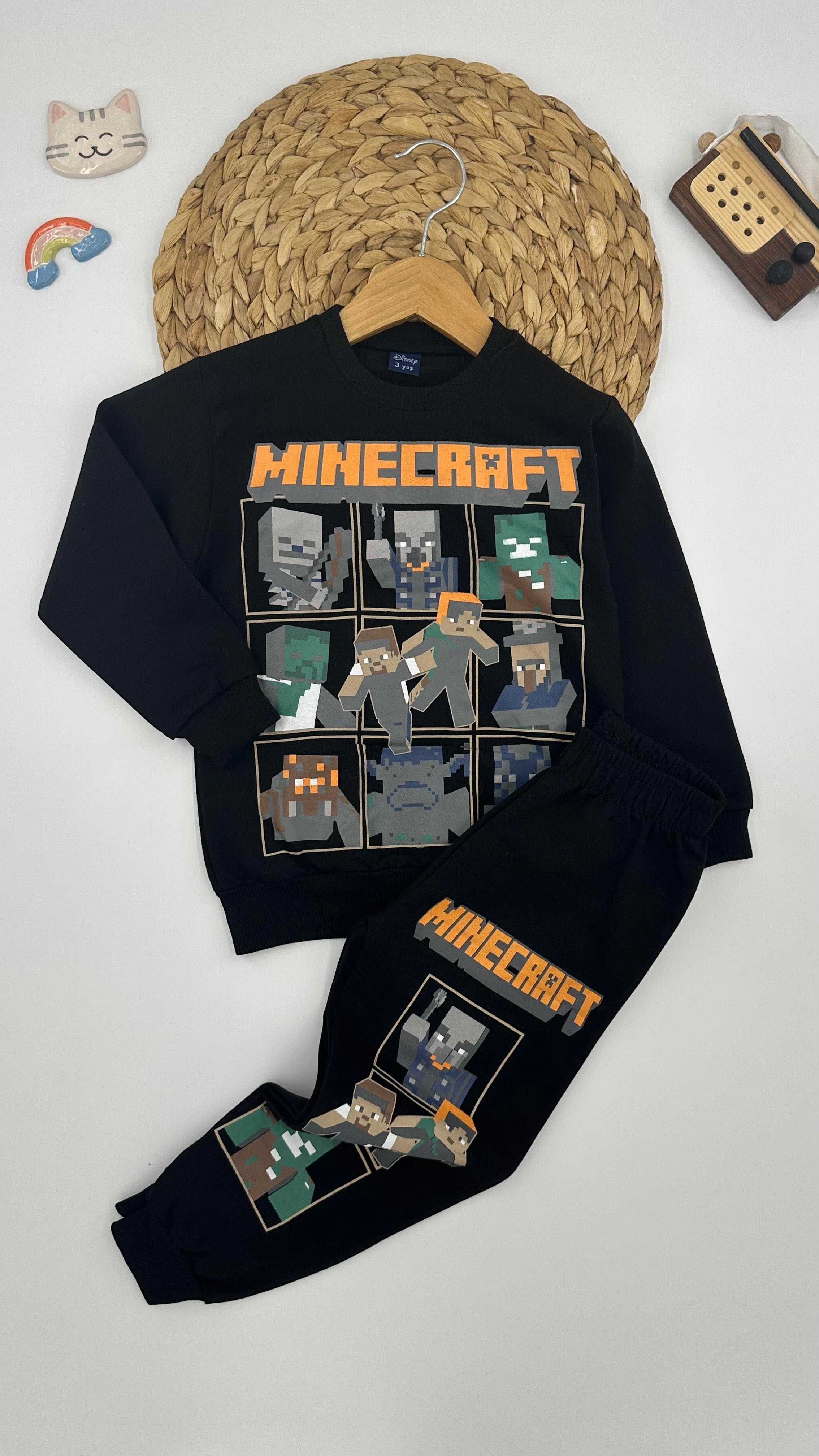 1509-3 Minecraft Desenli Erkek Çocuk Takım SİYAH