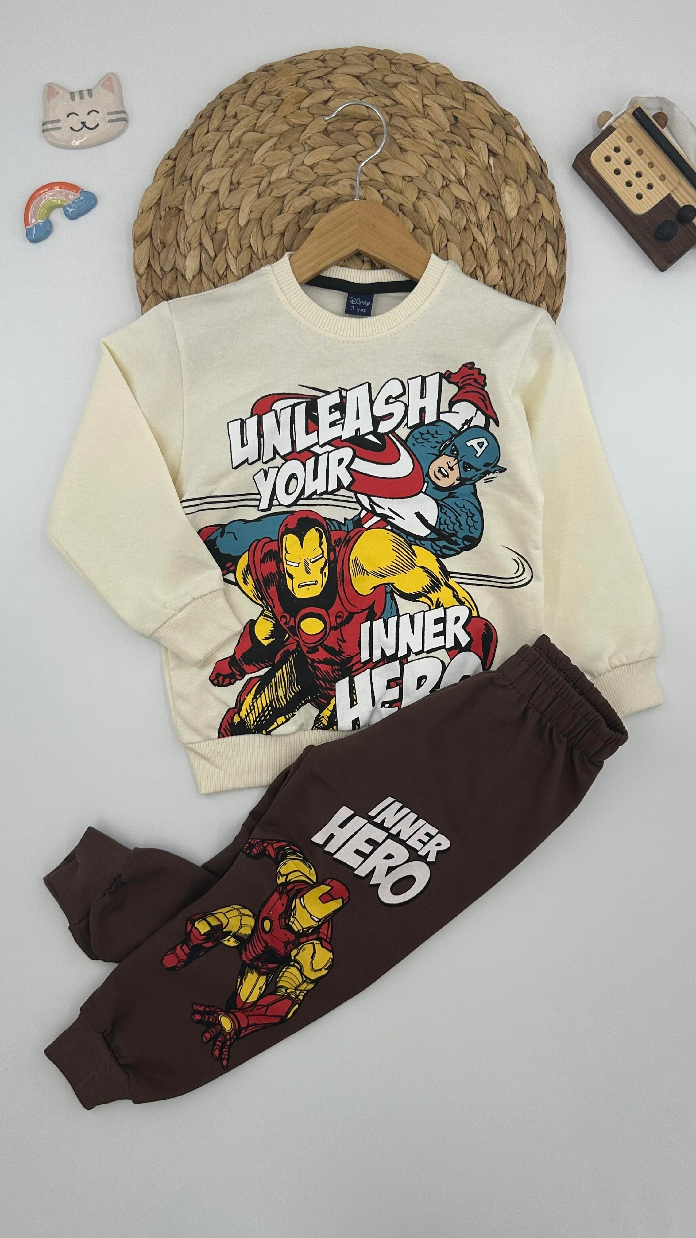 1509-7 Marvel Desenli Erkek Çocuk Takım KREM