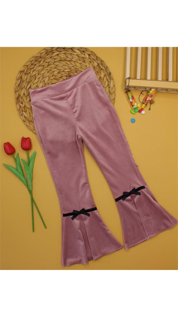 1515 Fiyonk Detaylı Fransız Kadife İspanyol Tayt PUDRA