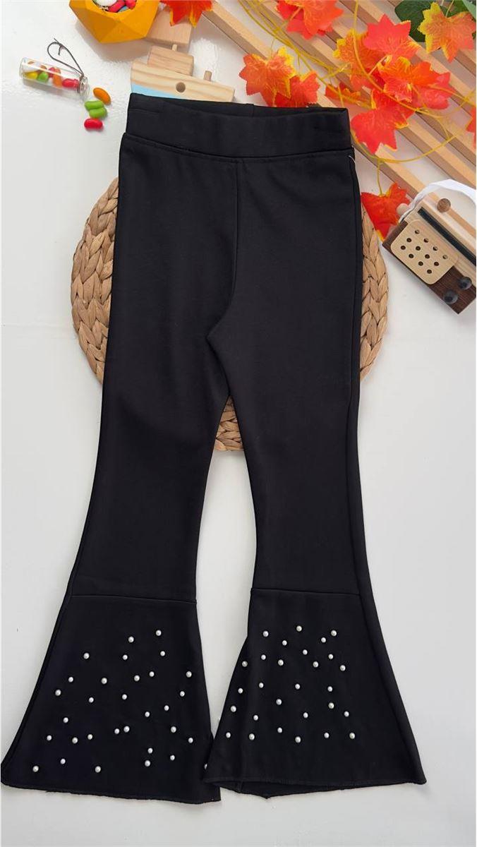 1555 İspanyol Paça Boncuklu Likralı Tayt SİYAH