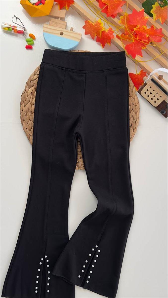 1557 İspanyol Paça Yırtmaçlı Boncuklu Tayt SİYAH