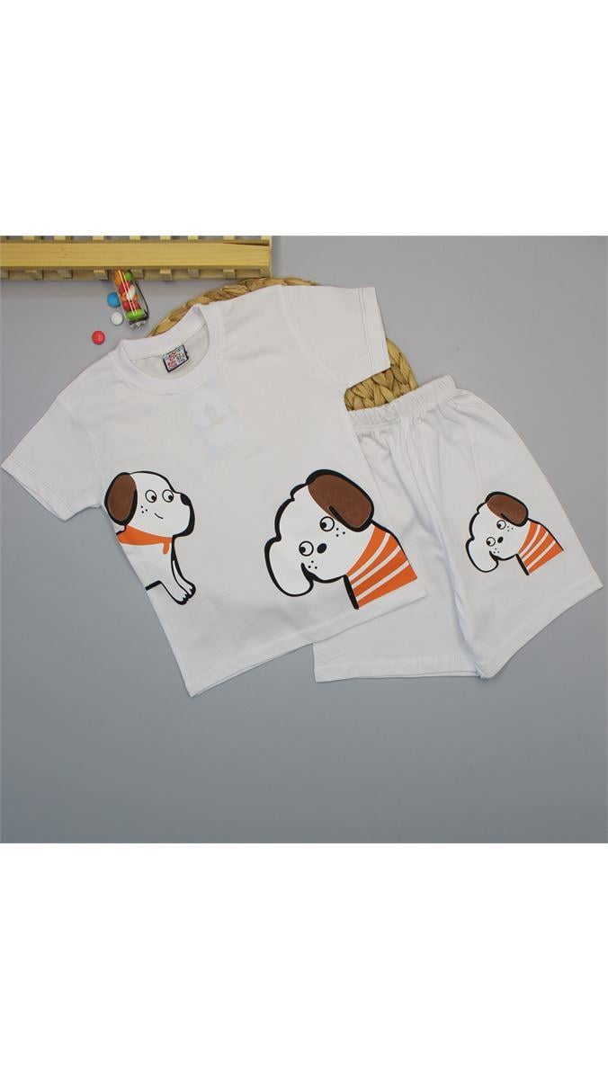 1605 Köpekcik Desenli Erkek Takım BEYAZ
