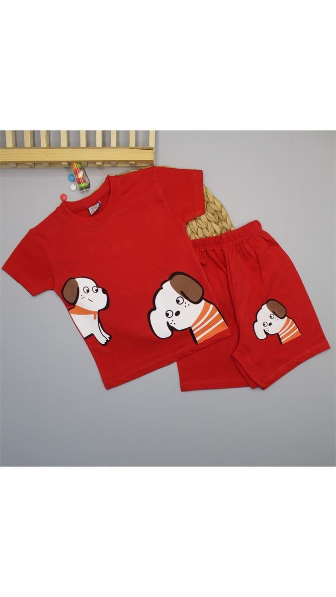 1605 Köpekcik Desenli Erkek Takım KIRMIZI