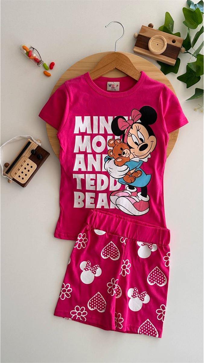 16058 Mickey Mouse Baskılı Şortlu Kız Takım FUŞYA 16058 Mickey Mouse Baskılı Şortlu Kız Takım SOMON