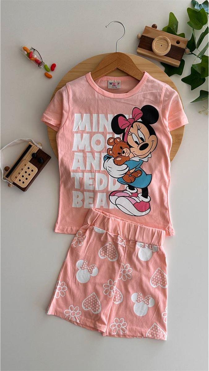 16058 Mickey Mouse Baskılı Şortlu Kız Takım SOMON