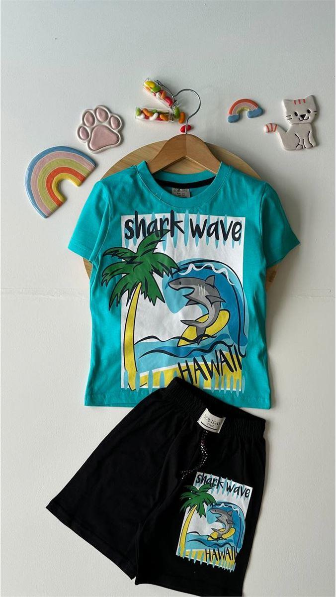 16068 Shark Wave Baskılı Erkek Çocuk Takım TURKUAZ