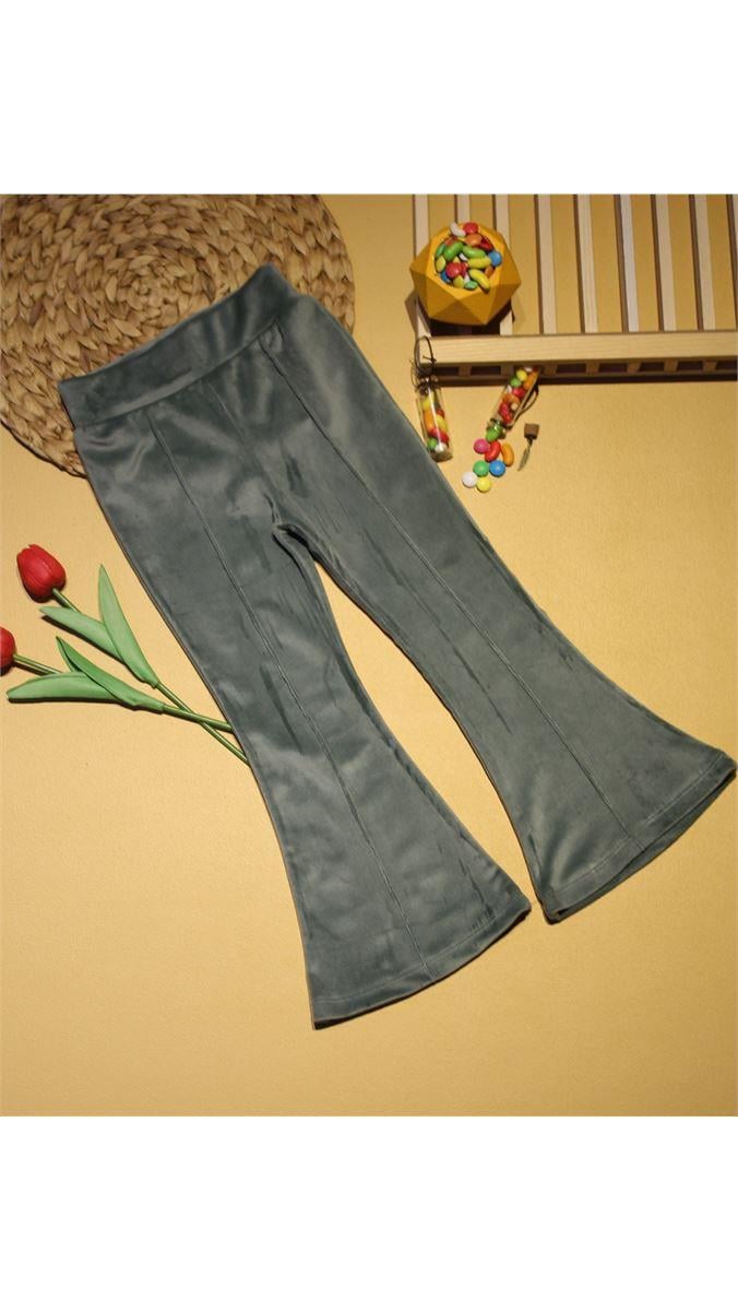 1616 İspanyol Paça Fransız Kadife Tayt YEŞİL