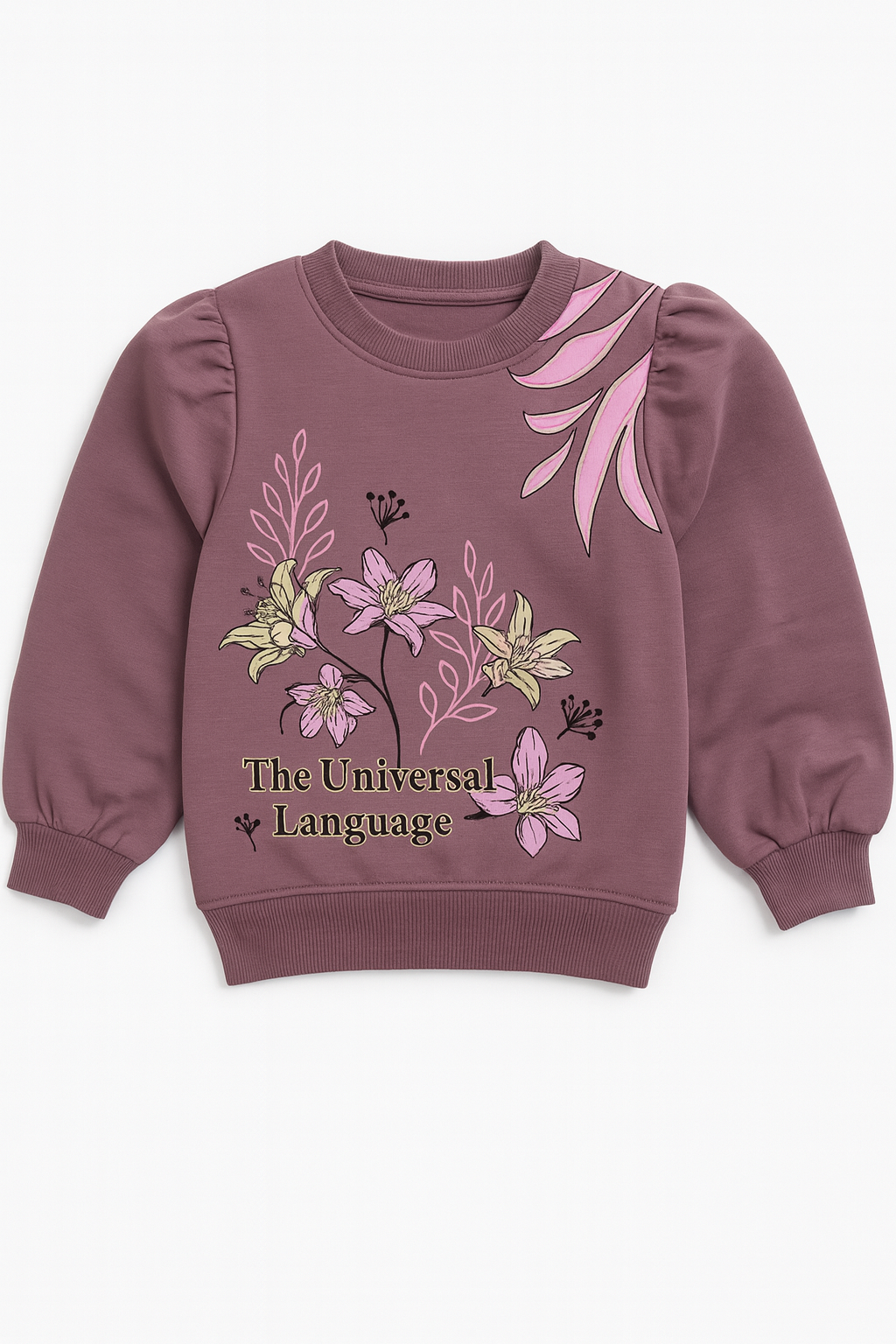 170305 Çiçek Desenli Language Kız Çocuk Swetshirt MOR