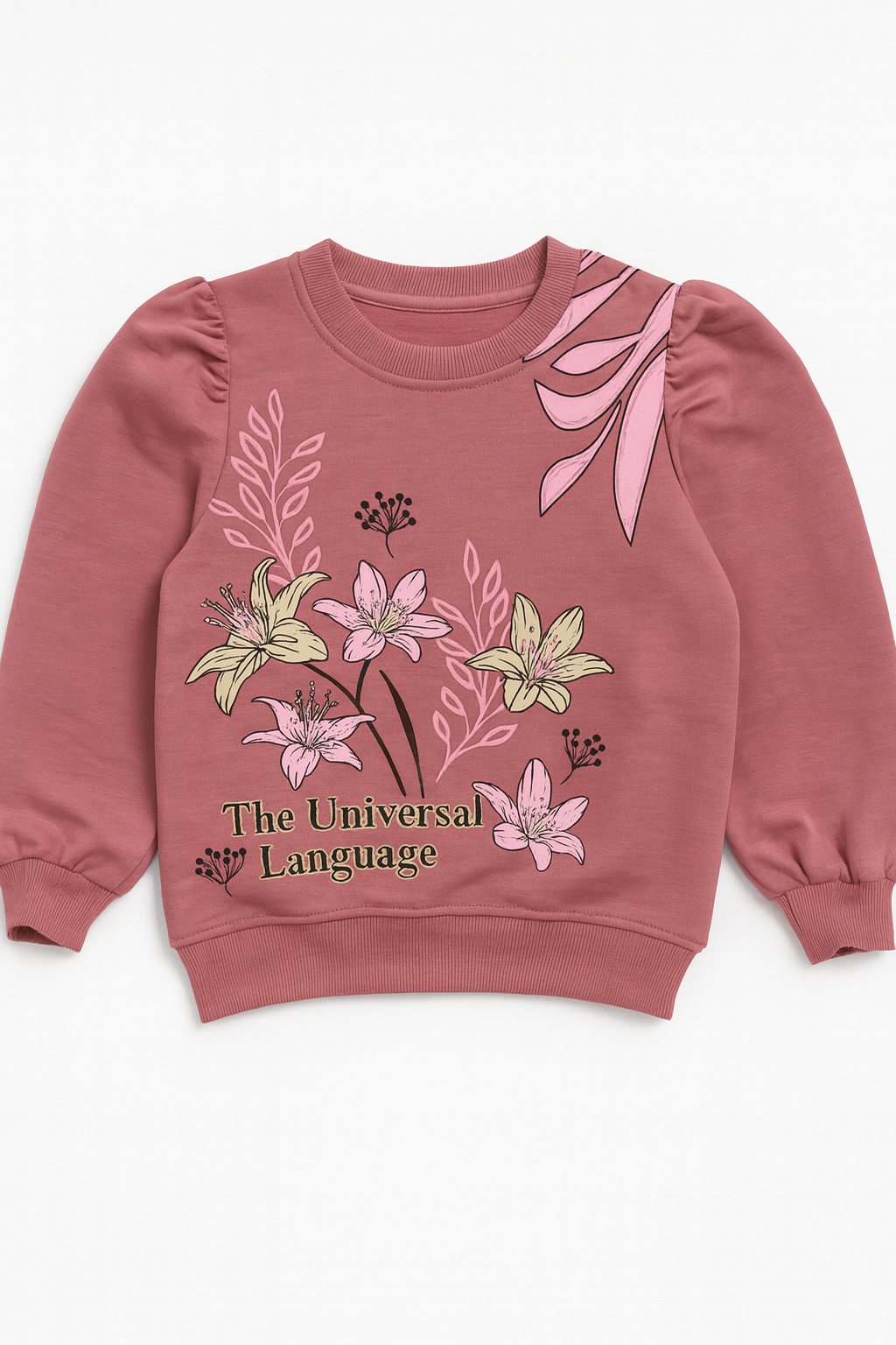 170305 Çiçek Desenli Language Kız Çocuk Swetshirt PEMBE