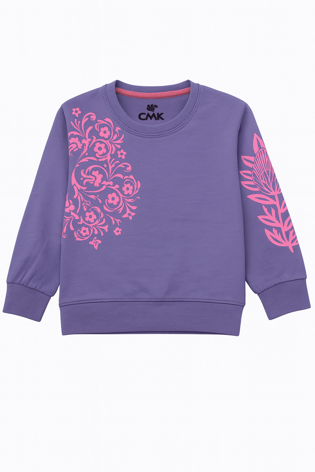 170450 Çiçek Motif Desenli Kız Çocuk Swetshirt LİLA