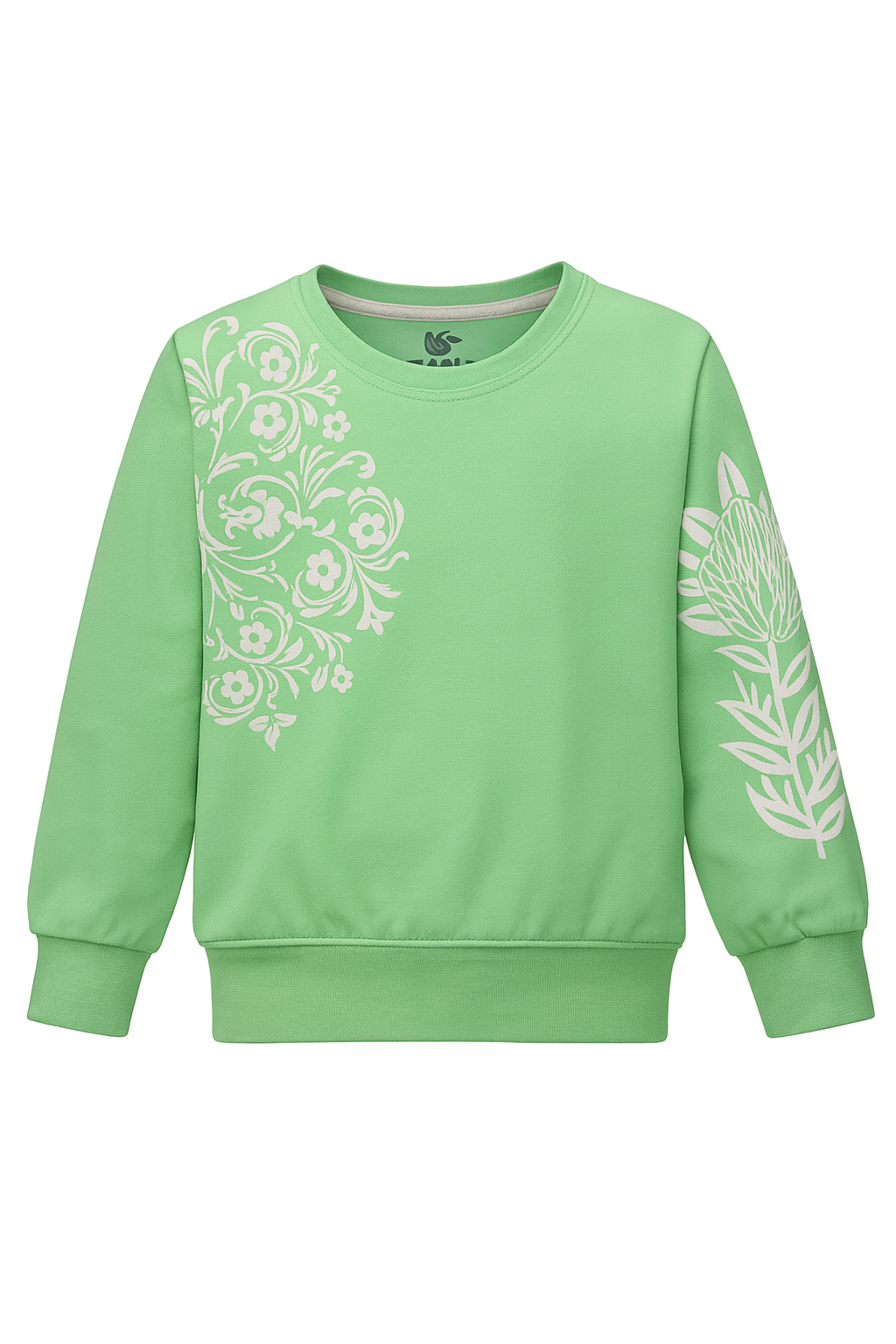 170450 Çiçek Motif Desenli Kız Çocuk Swetshirt YEŞİL