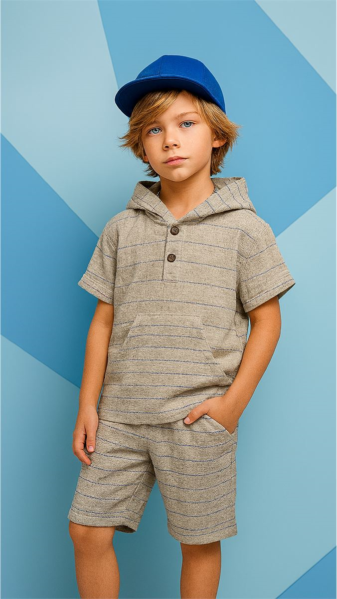 1707 Kapişonlu Düğmeli Erkek Çocuk Takım MAVİ