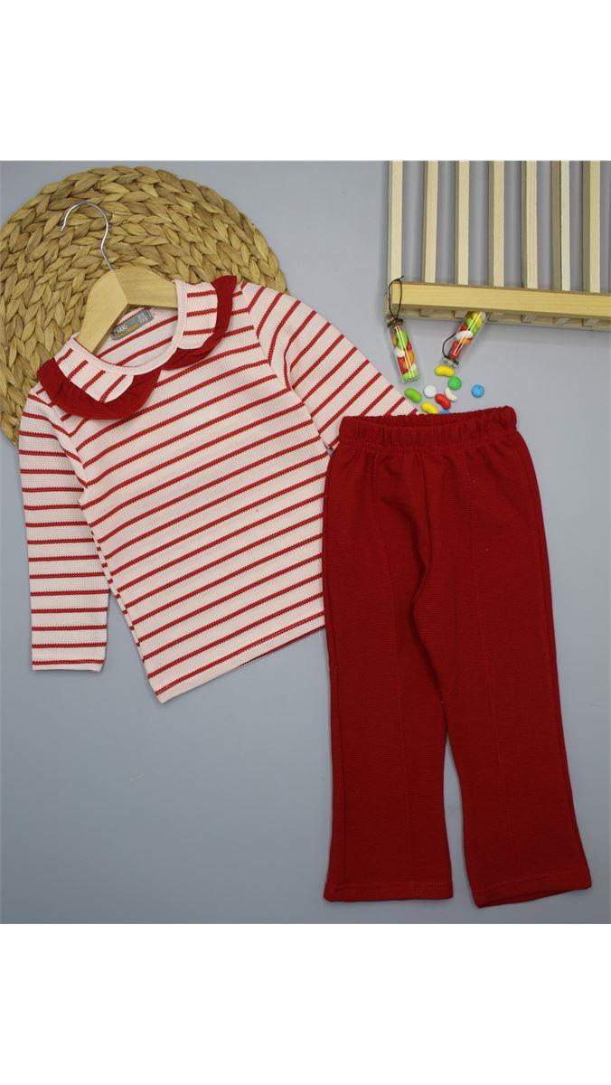 170875 Bebe Yaka Çizgili Sweatli Takım KIRMIZI