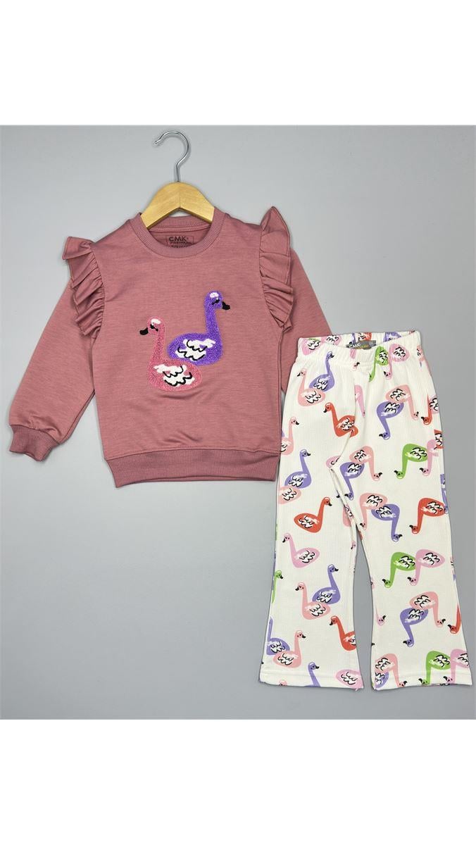 170910 Omuz Fırfırlı Ördek Nakışlı İspanyol Paça Takım GÜL KURUSU