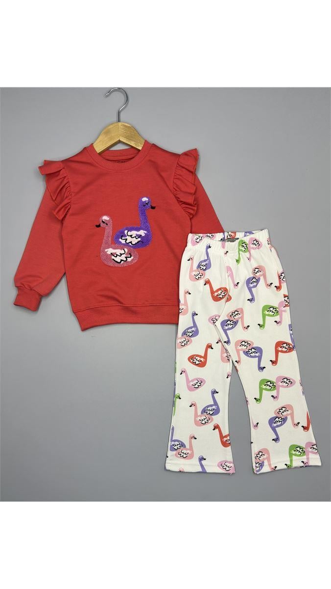 170910 Omuz Fırfırlı Ördek Nakışlı İspanyol Paça Takım NARÇ