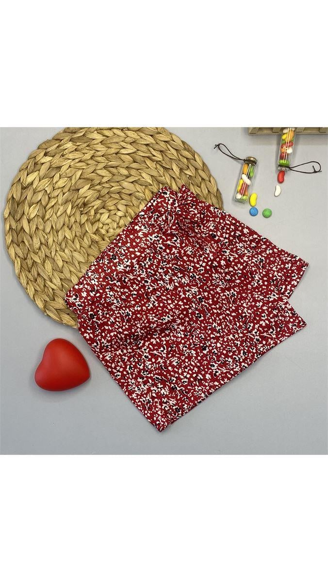 1714-44 Fiyonklu Kapaklı Şort KIRMIZI