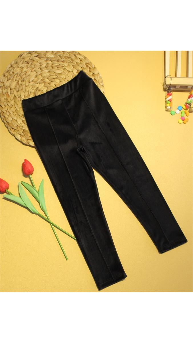 1717 Düz Paça Fransız Kadife Tayt SİYAH