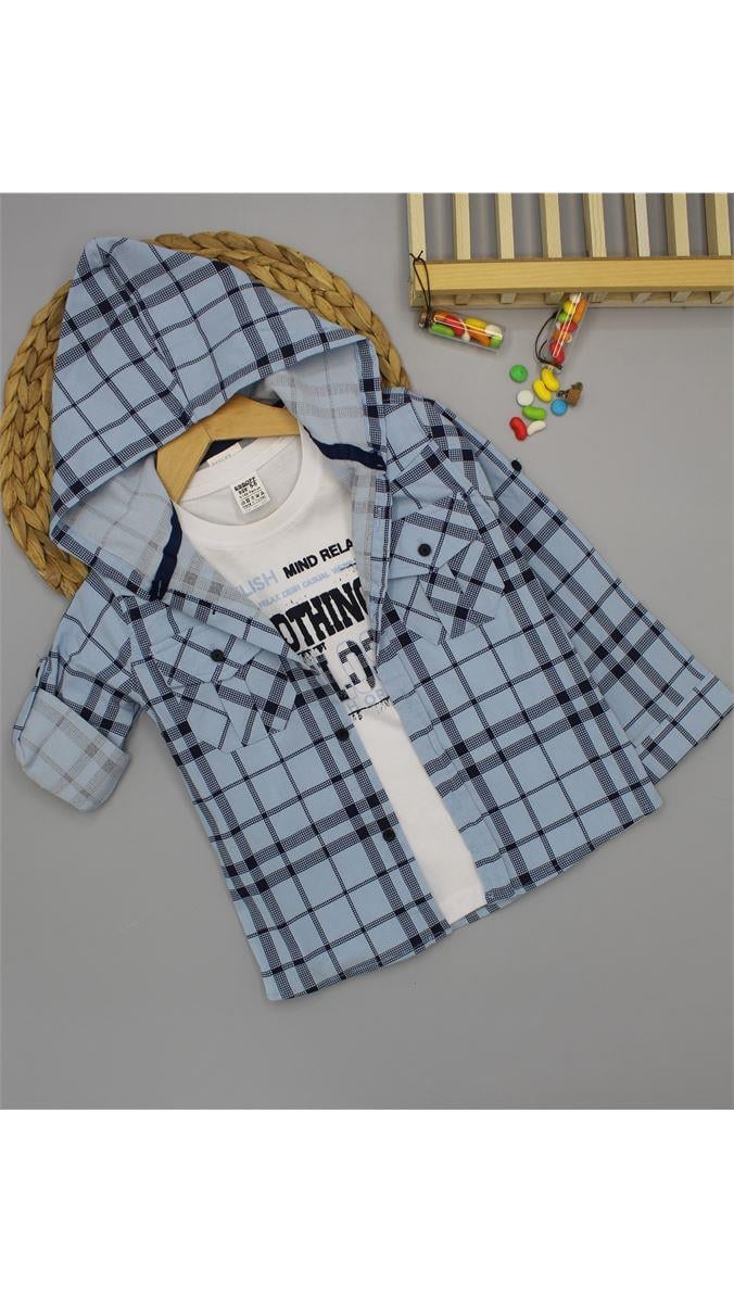 1791 T-Shirtlü Gömlekli Kapişonlu Takım MAVİ