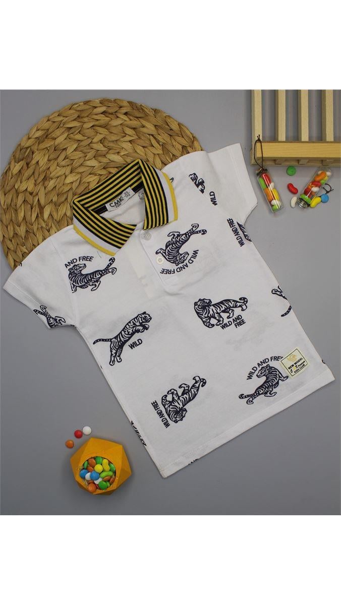 180080 Erkek Kaplan Baskılı Yakalı T-Shirt BEYAZ