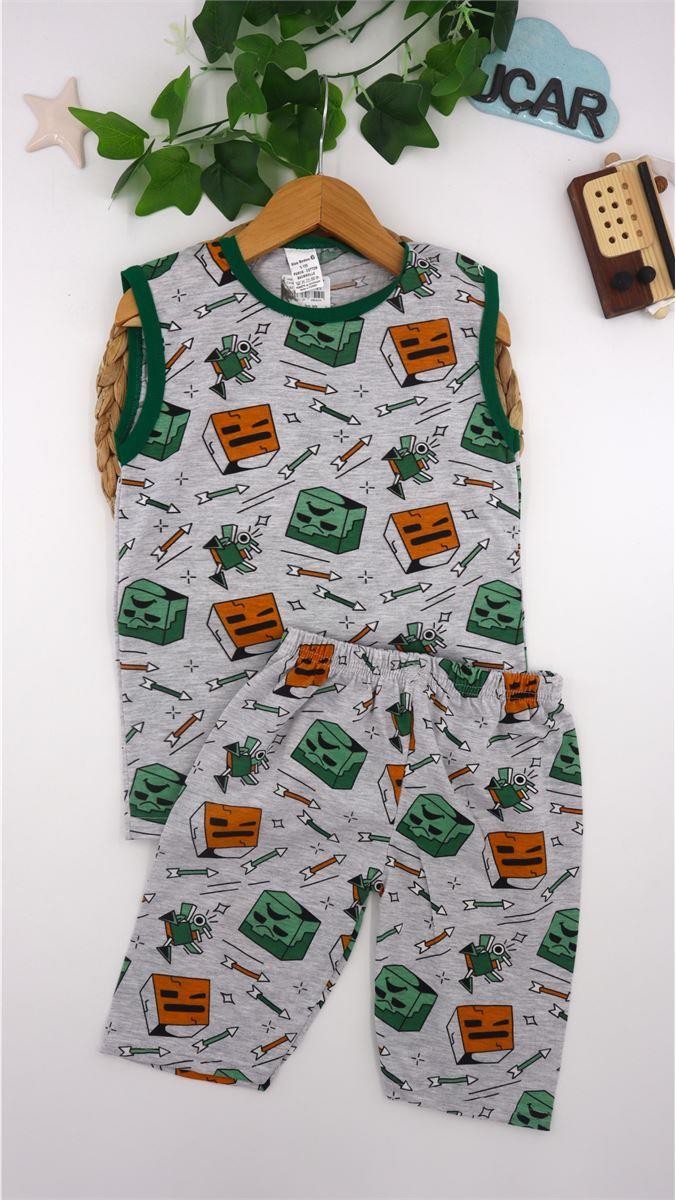 1806 Minecraft Baskılı Erkek Çocuk Takım GRİ