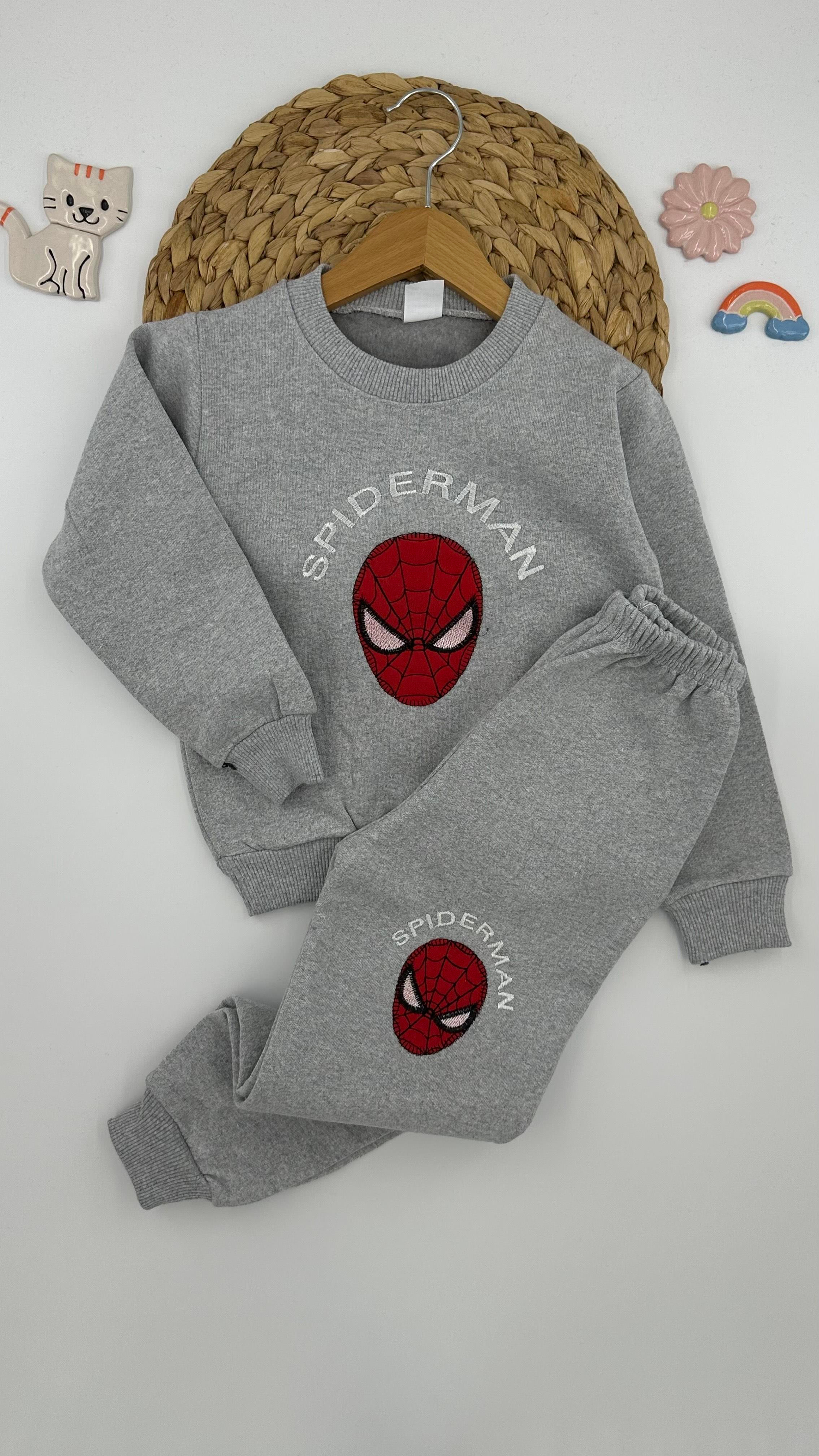 1809 Spiderman Desenli İki İp Şardonlu Çocuk Takım GRİ