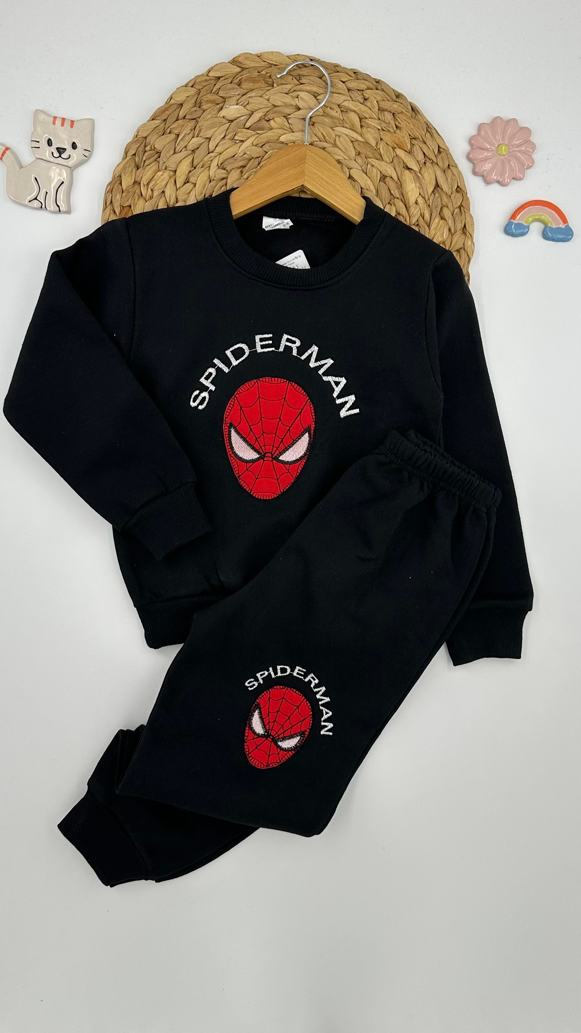 1809 Spiderman Desenli İki İp Şardonlu Çocuk Takım SİYAH