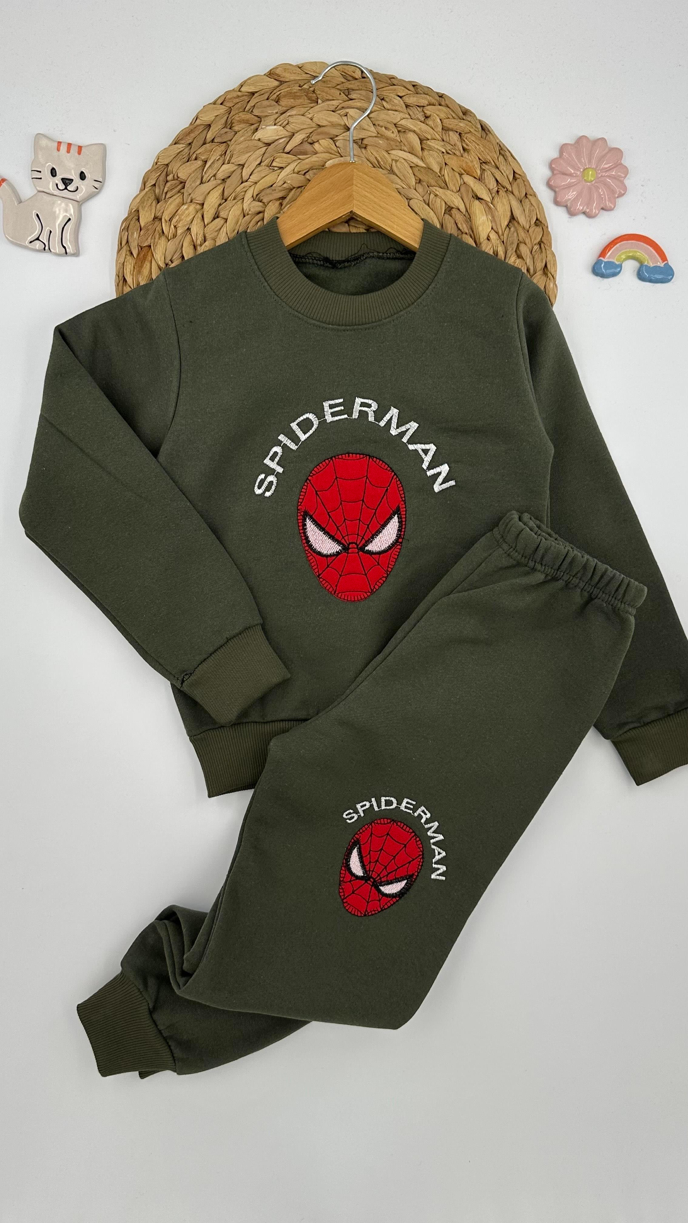 1809 Spiderman Desenli İki İp Şardonlu Çocuk Takım YEŞİL