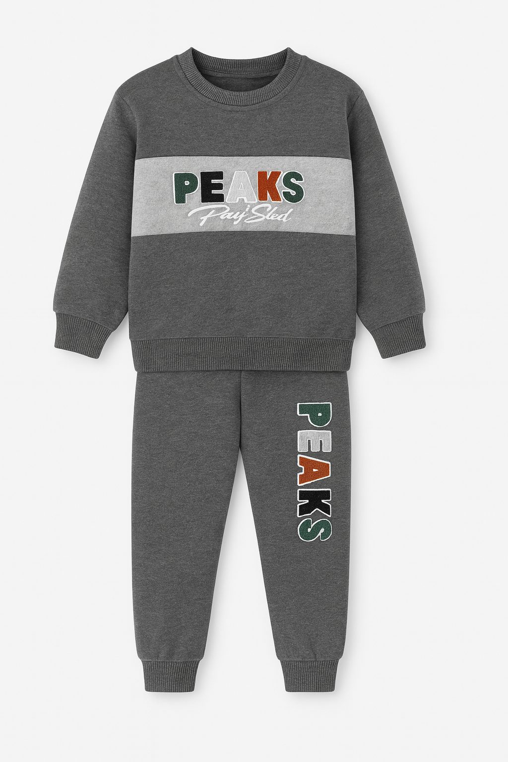 1811 Peaks Desenli İki İp Şardonlu Çocuk Takım GRİ