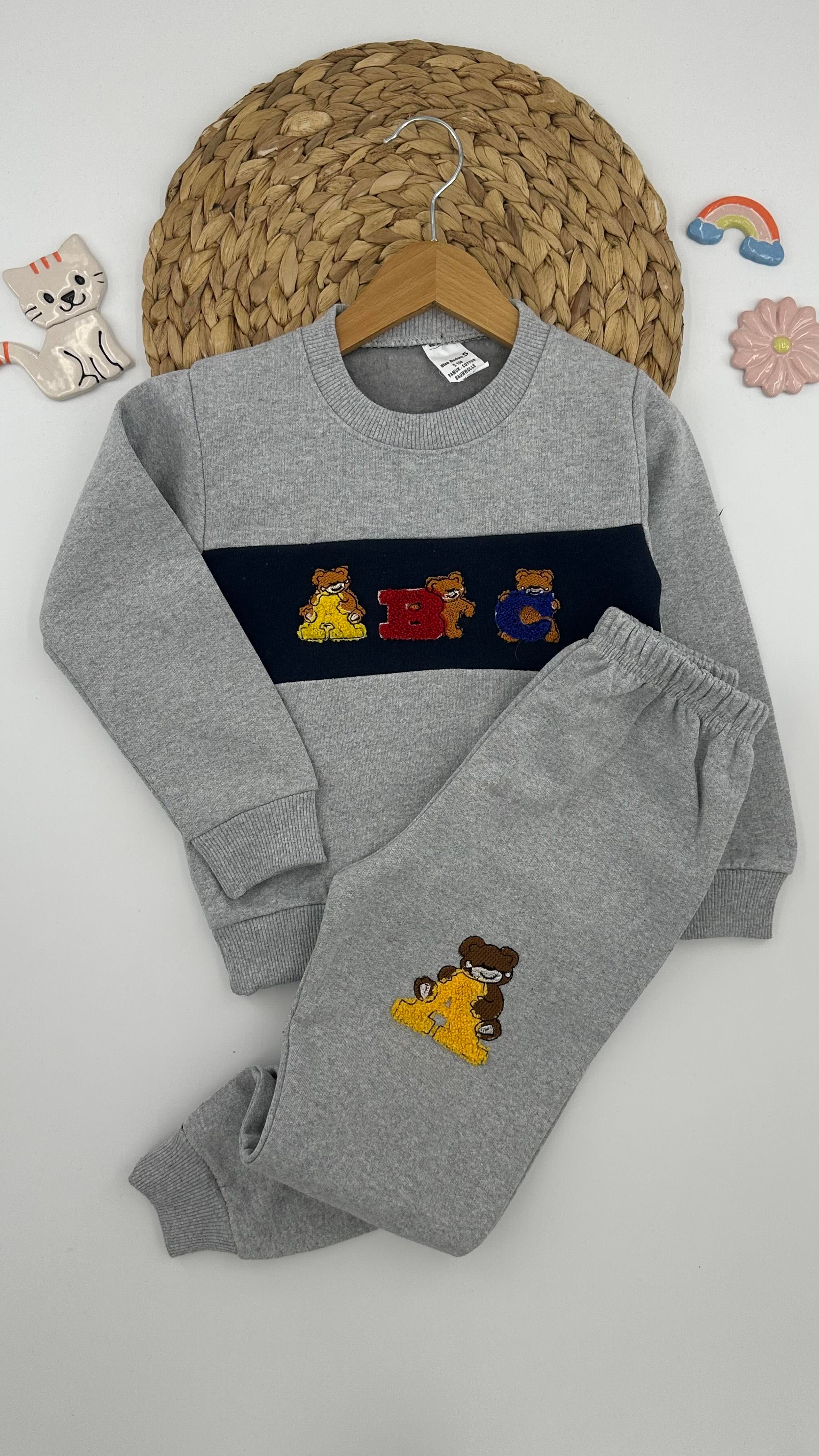 1812 Abc Desenli İki İp Şardonlu Çocuk Takım GRİ