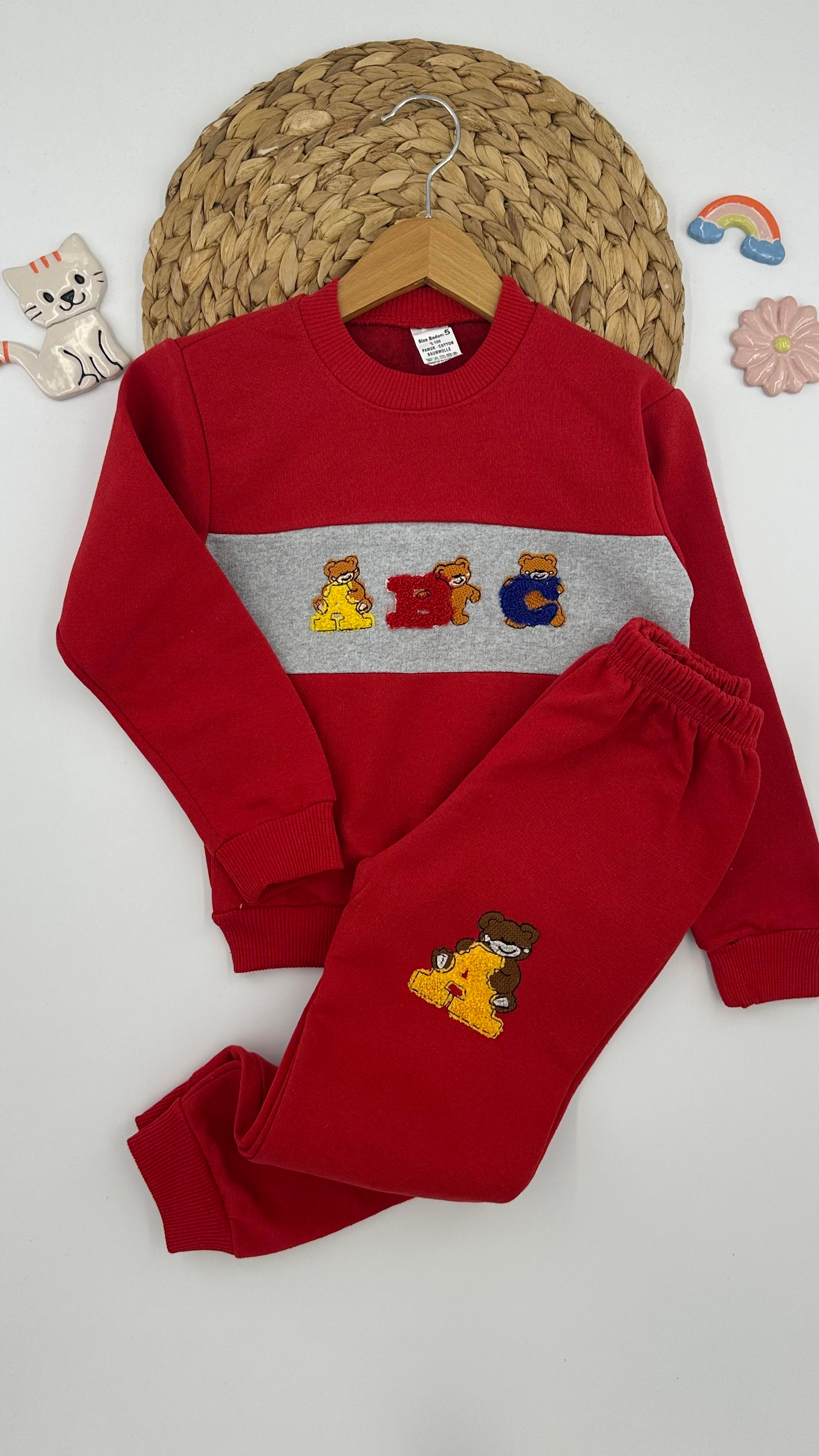 1812 Abc Desenli İki İp Şardonlu Çocuk Takım KIRMIZI