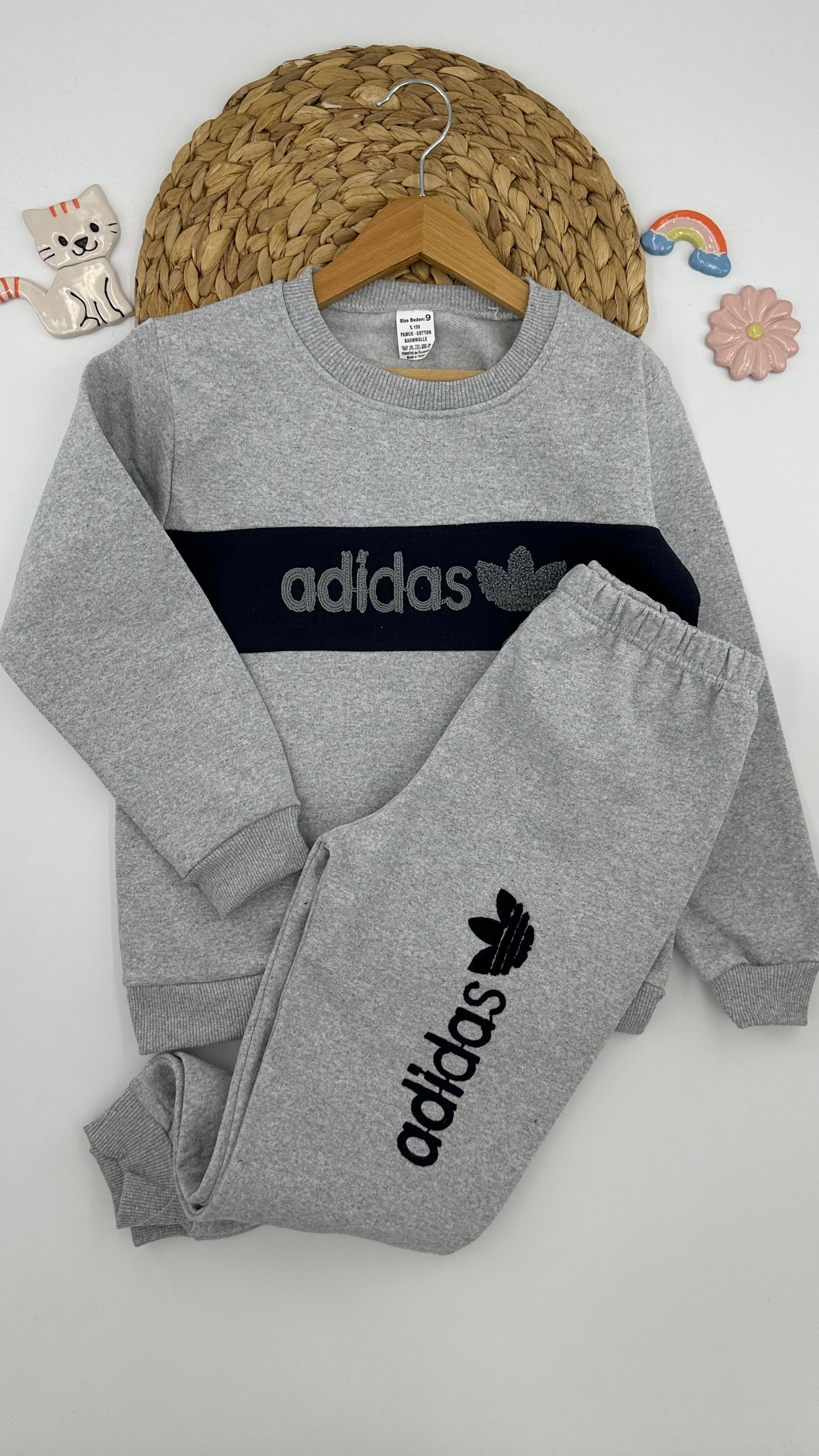 1813 Adds Desenli İki İp Şardonlu Çocuk Takım GRİ