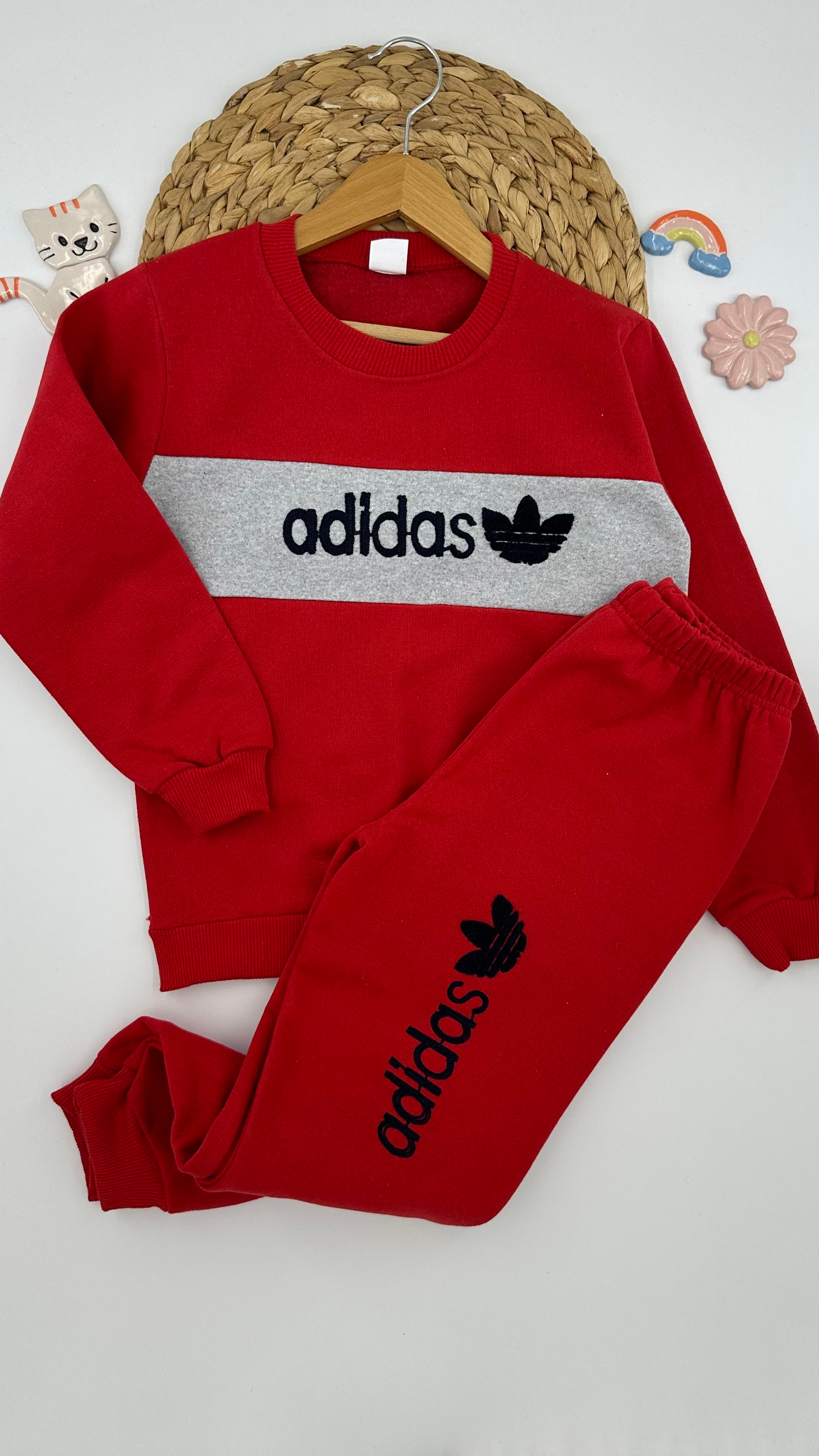 1813 Adds Desenli İki İp Şardonlu Çocuk Takım KIRMIZI