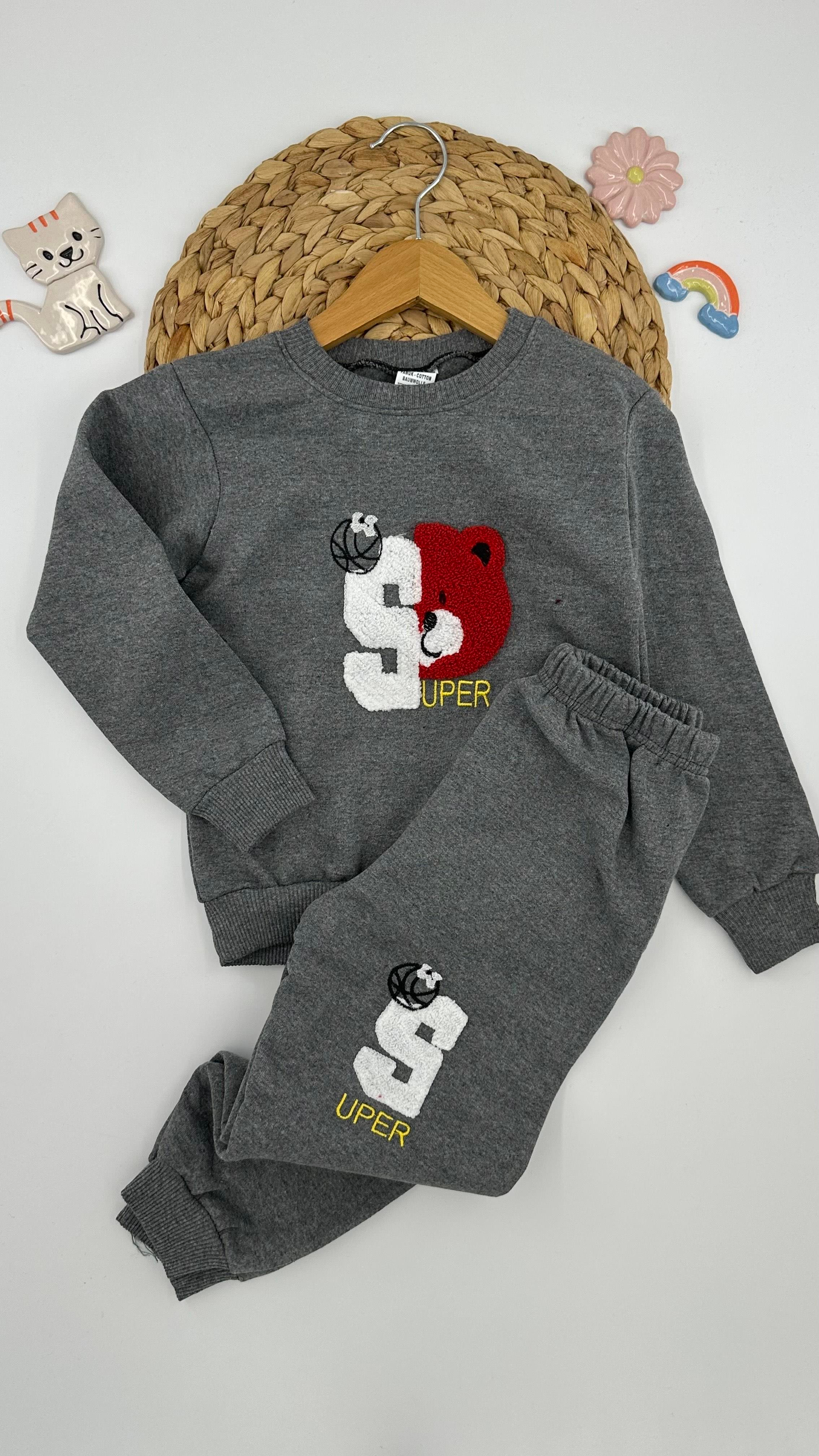 1814 Ayıcık Desenli İki İp Şardonlu Çocuk Takım ANT