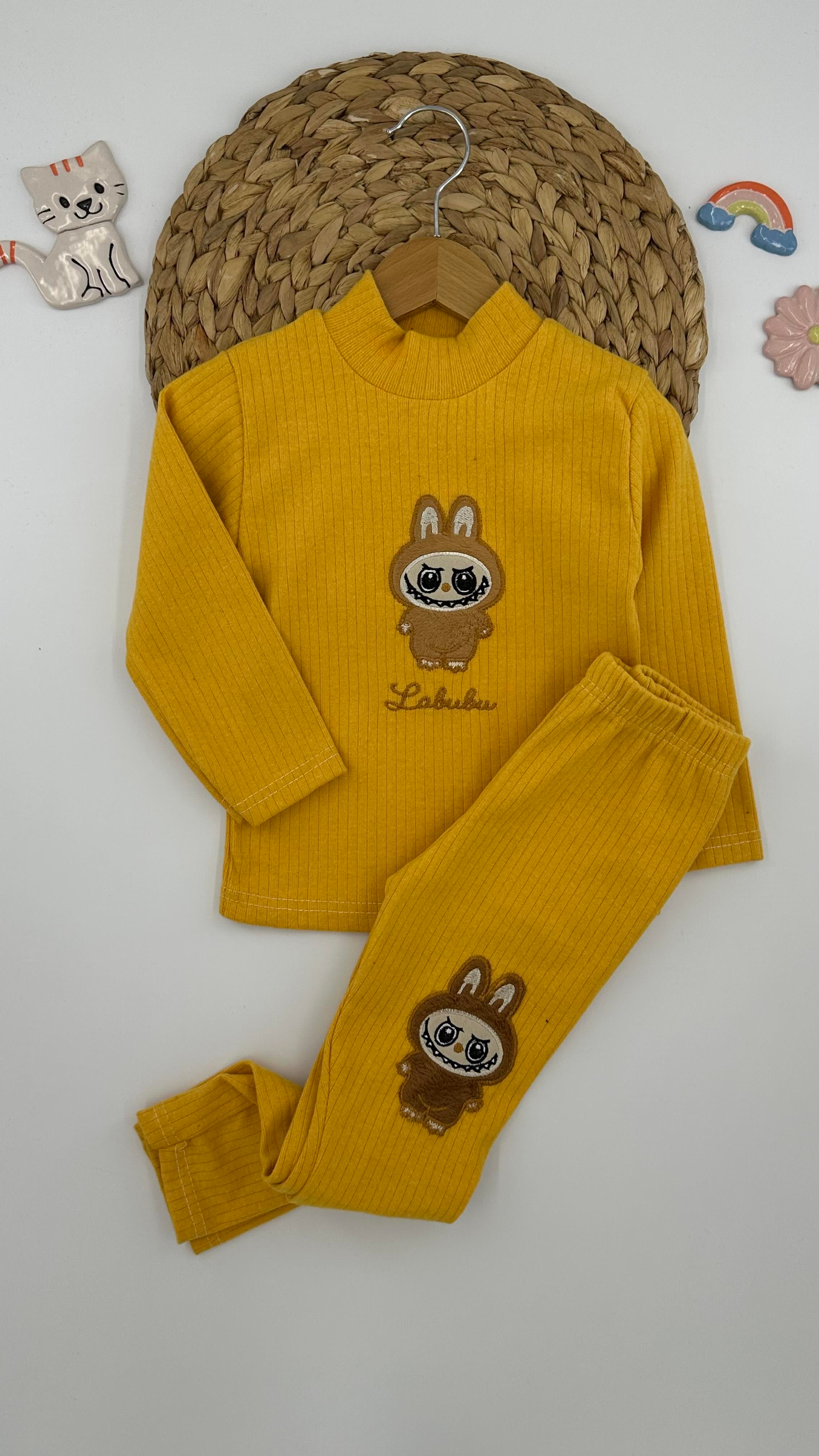 1836-1 Labubu Nakışlı Fitilli Kız Çocuk Takım SARI